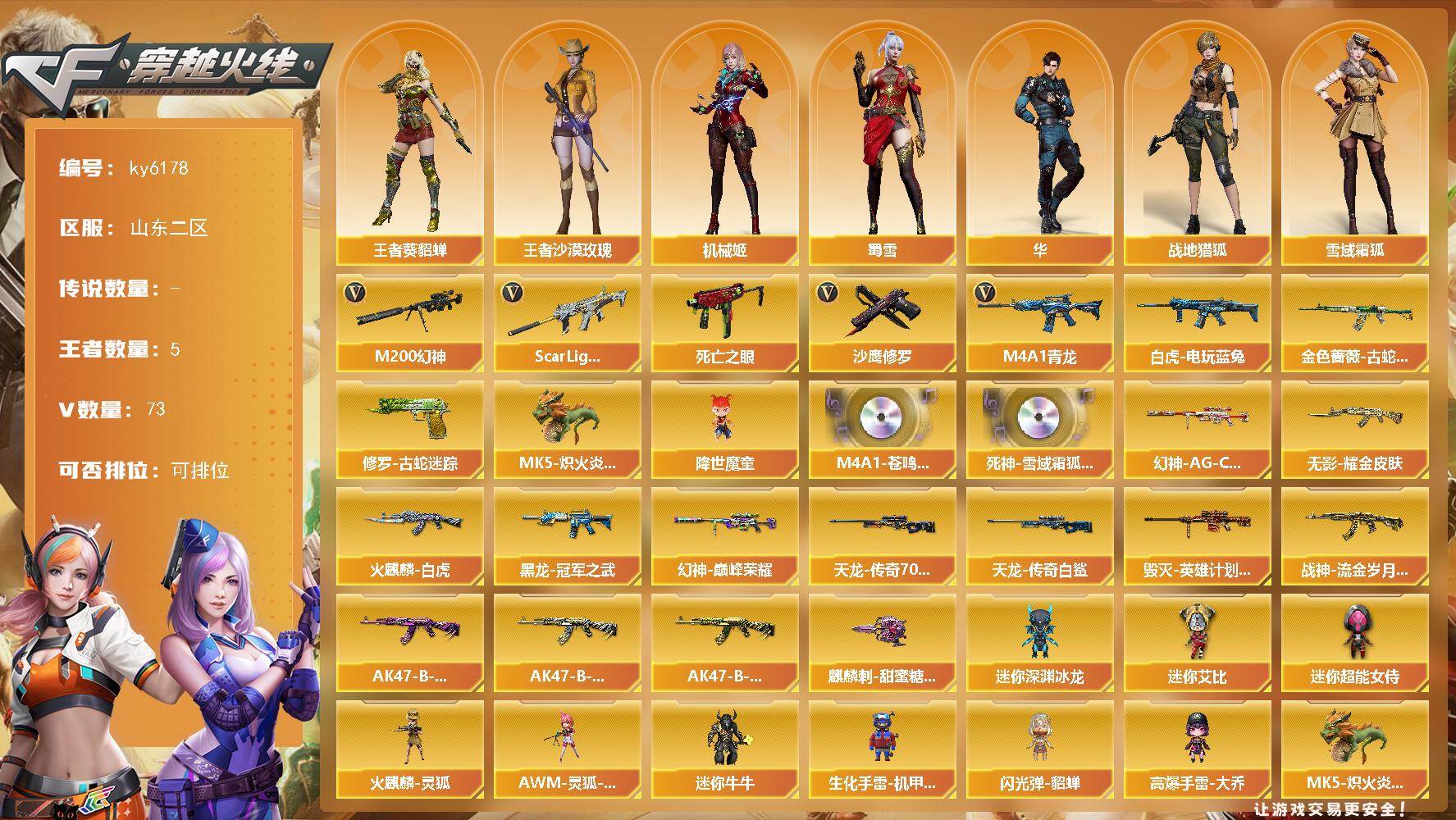 山东二区-73V-5王者武器数-0炫金武器数【热门武器】:Scar Ligh