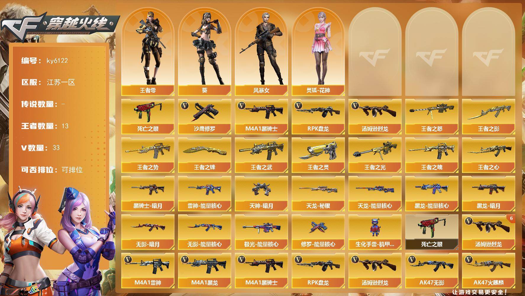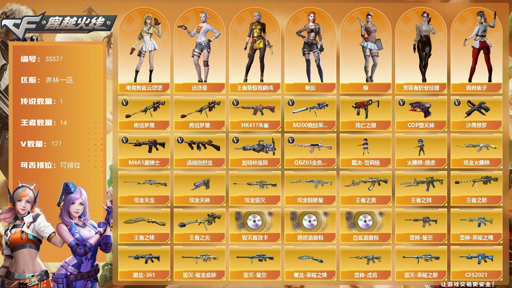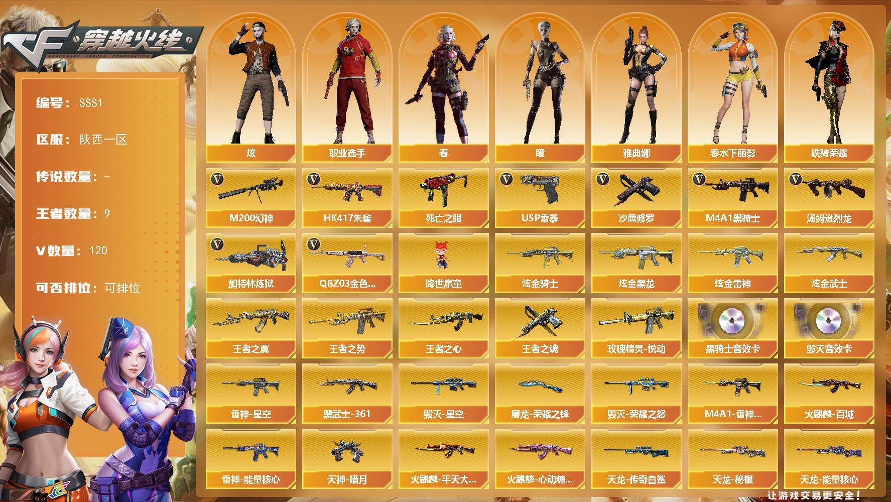 四川二区-25V-8王者-1炫金【热门武器】:加特林-炼狱*4,沙鹰-修罗*