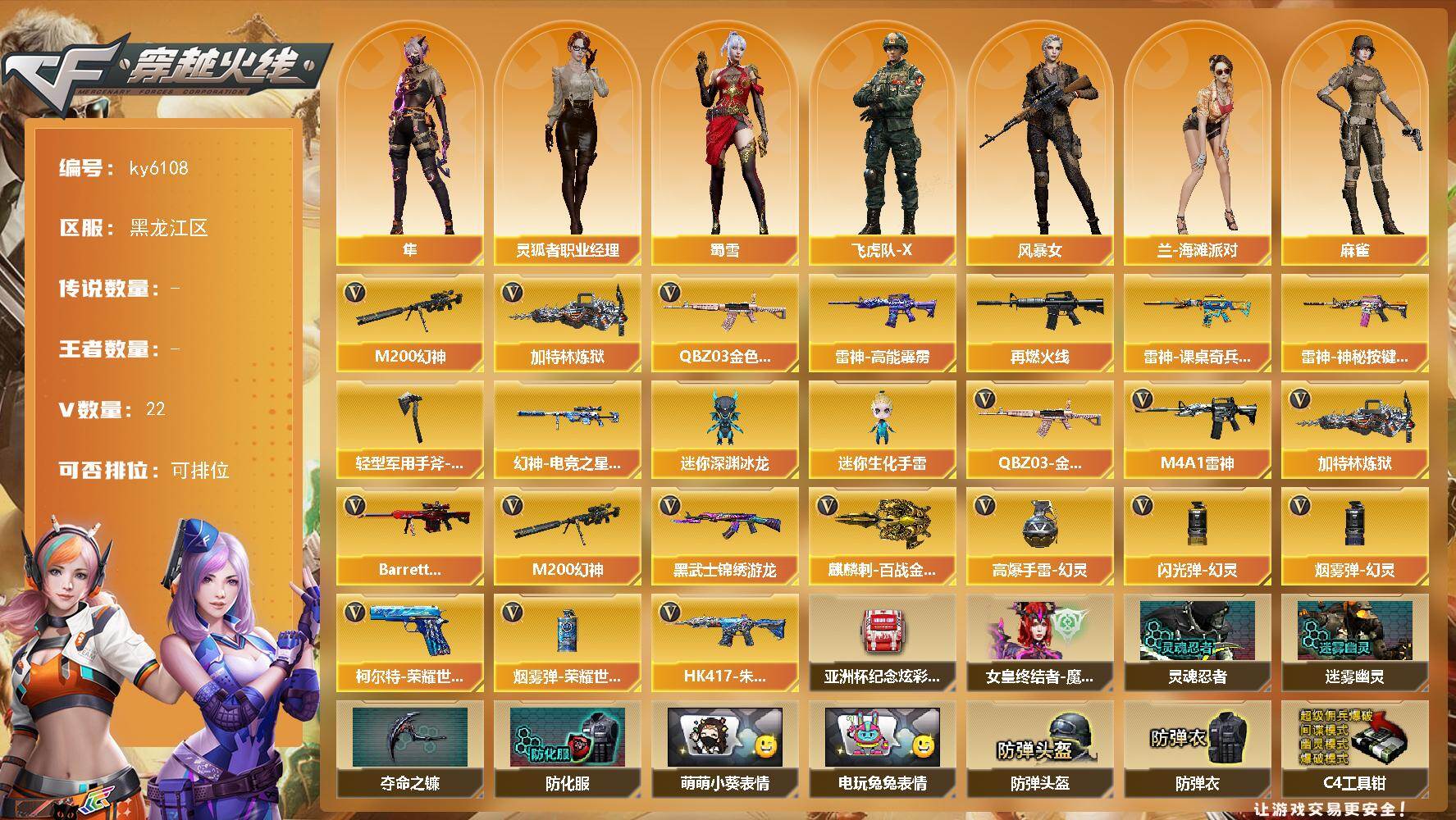 吉林一区-4V-0王者-0炫金【热门武器】:M200-幻神【皮肤】:火麒麟