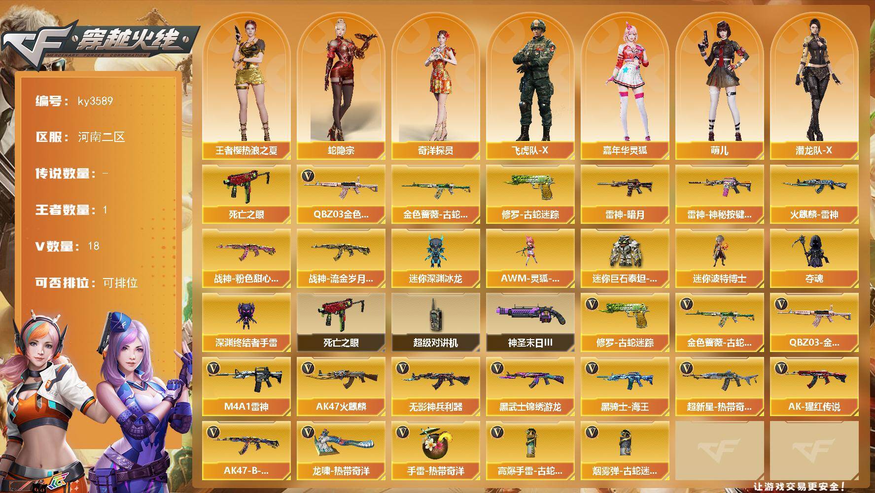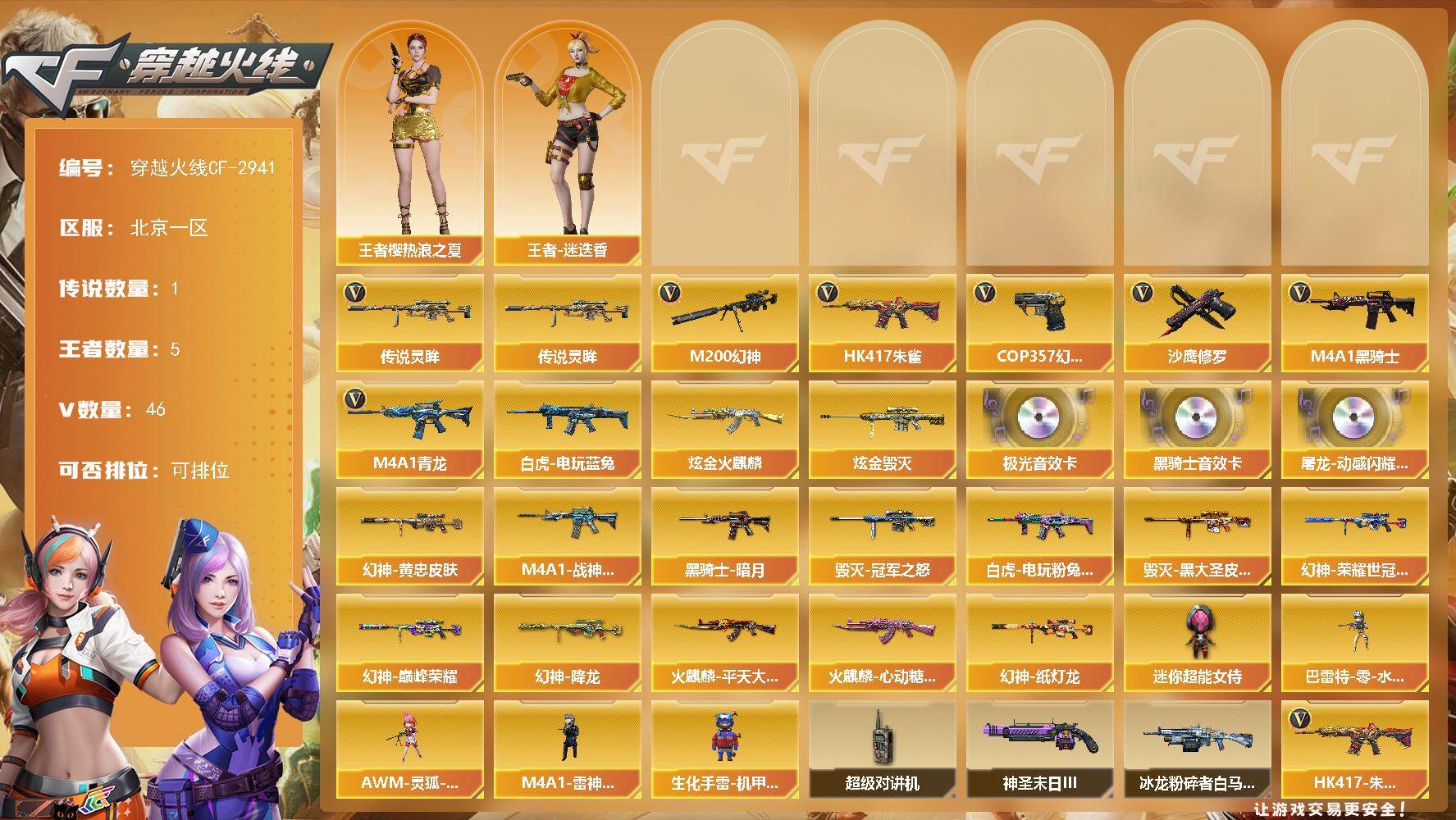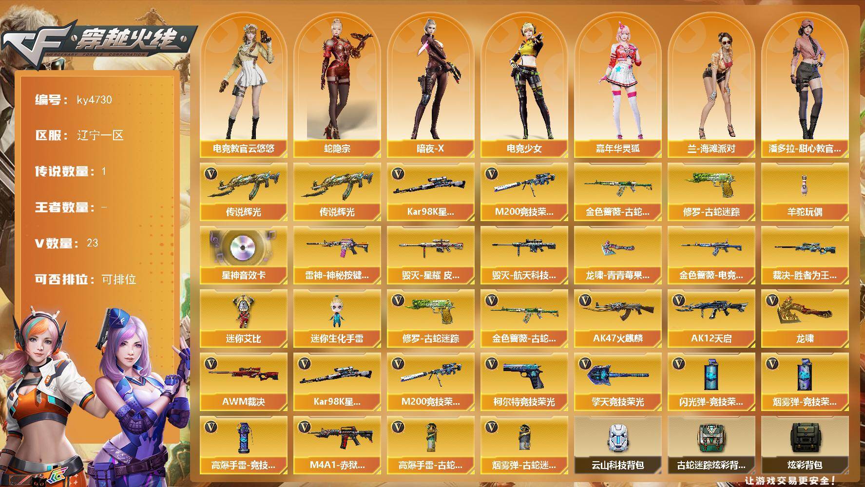四川二区-25V-8王者-1炫金【热门武器】:加特林-炼狱*4,沙鹰-修罗*