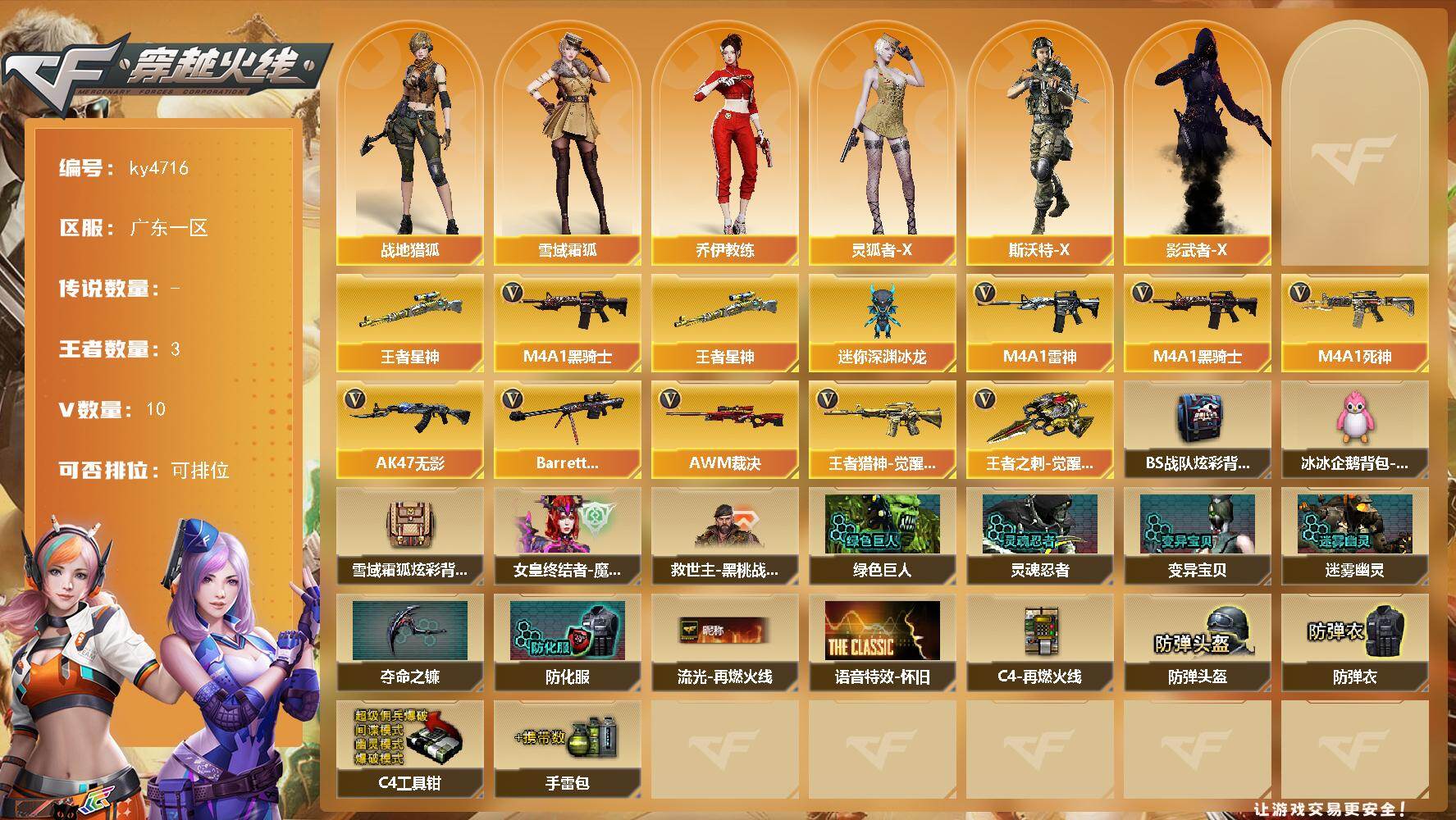 广东一区-10V-3王者-0炫金【热门武器】:王者星神,M4A1-黑骑士【