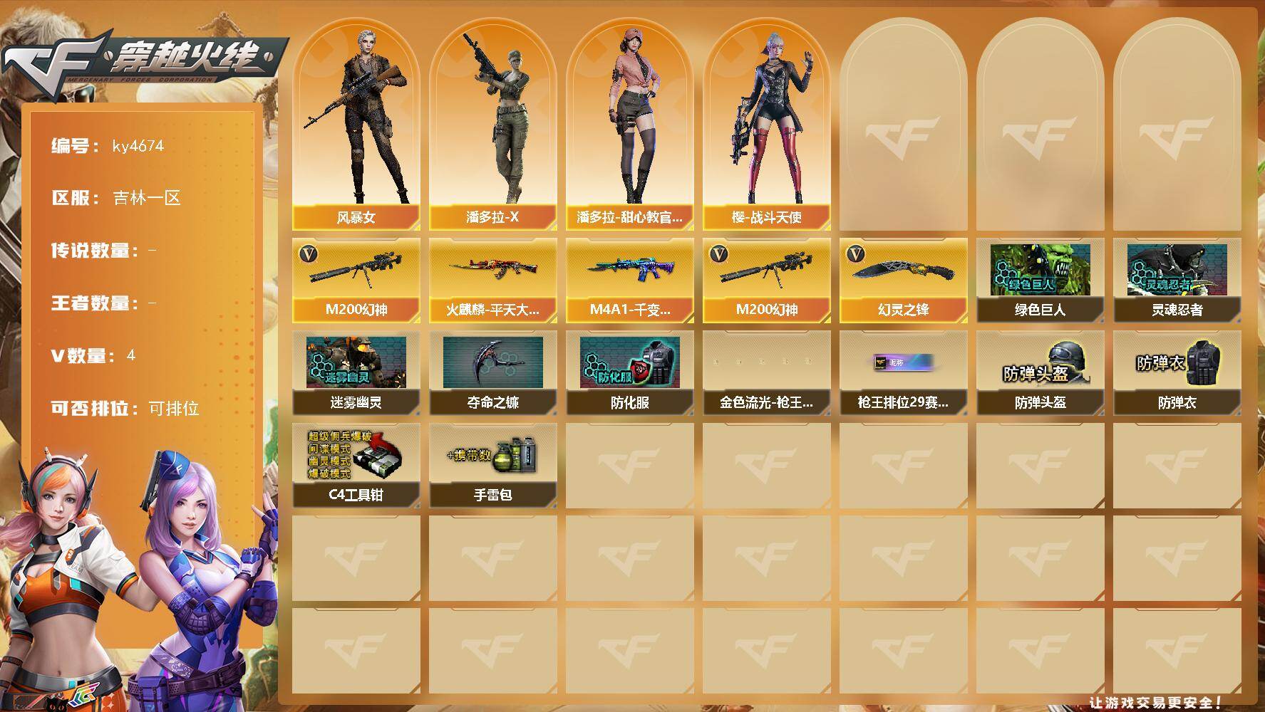 吉林一区-4V-0王者-0炫金【热门武器】:M200-幻神【皮肤】:火麒麟