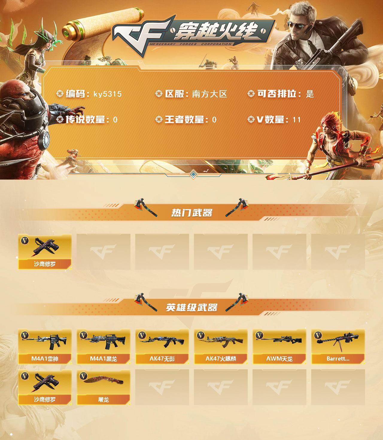 南方大区-11V-0王者武器数-0炫金武
