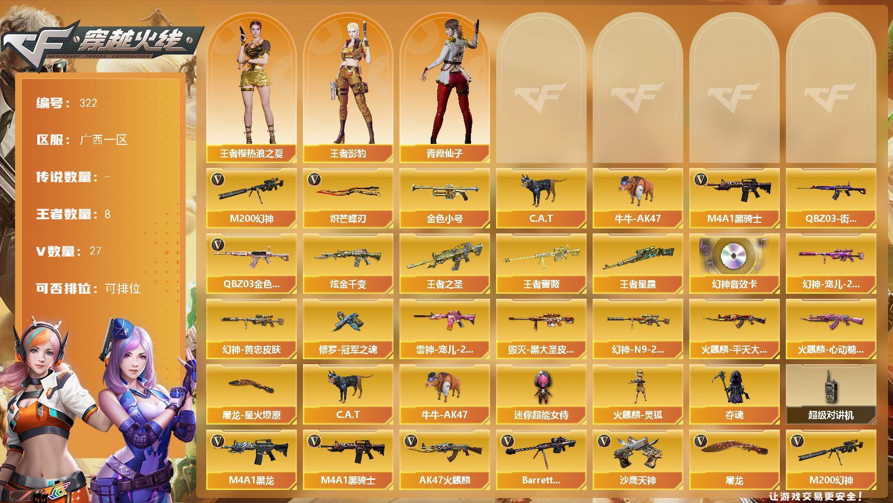 陕西一区-44V-2王者武器数-1炫金武器数