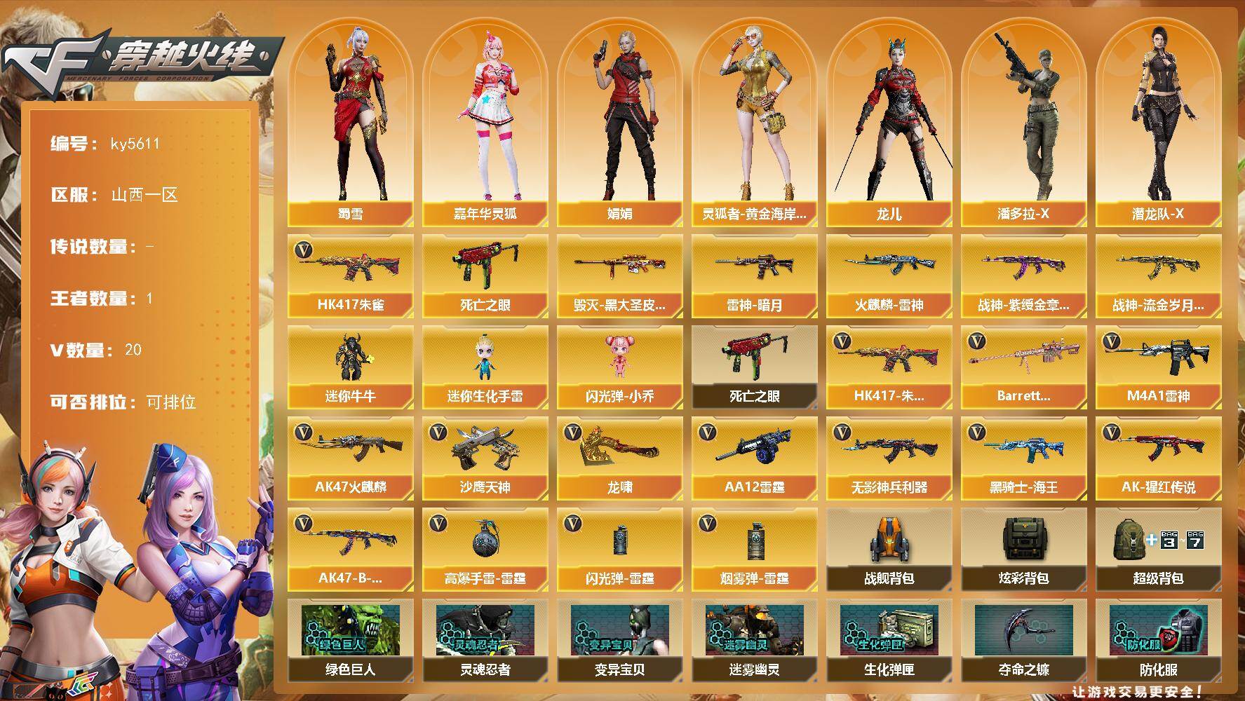 山西一区-20V-1王者-0炫金【热门武器】:HK417-朱雀,死亡之眼【
