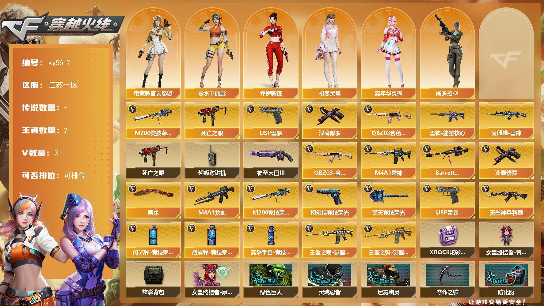 江苏一区-33V-2王者武器数-0炫金武器数【热门武器】:QBZ03-金色蔷