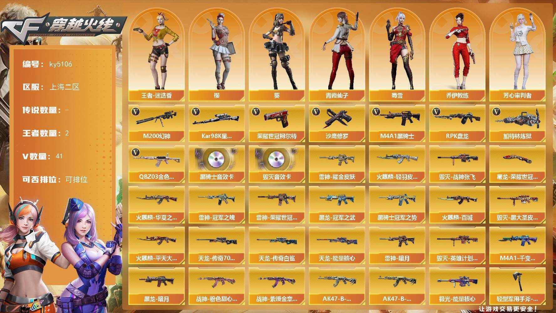 上海二区-41V-2王者-0炫金【热门武器】:QBZ03-金色蔷薇,M200