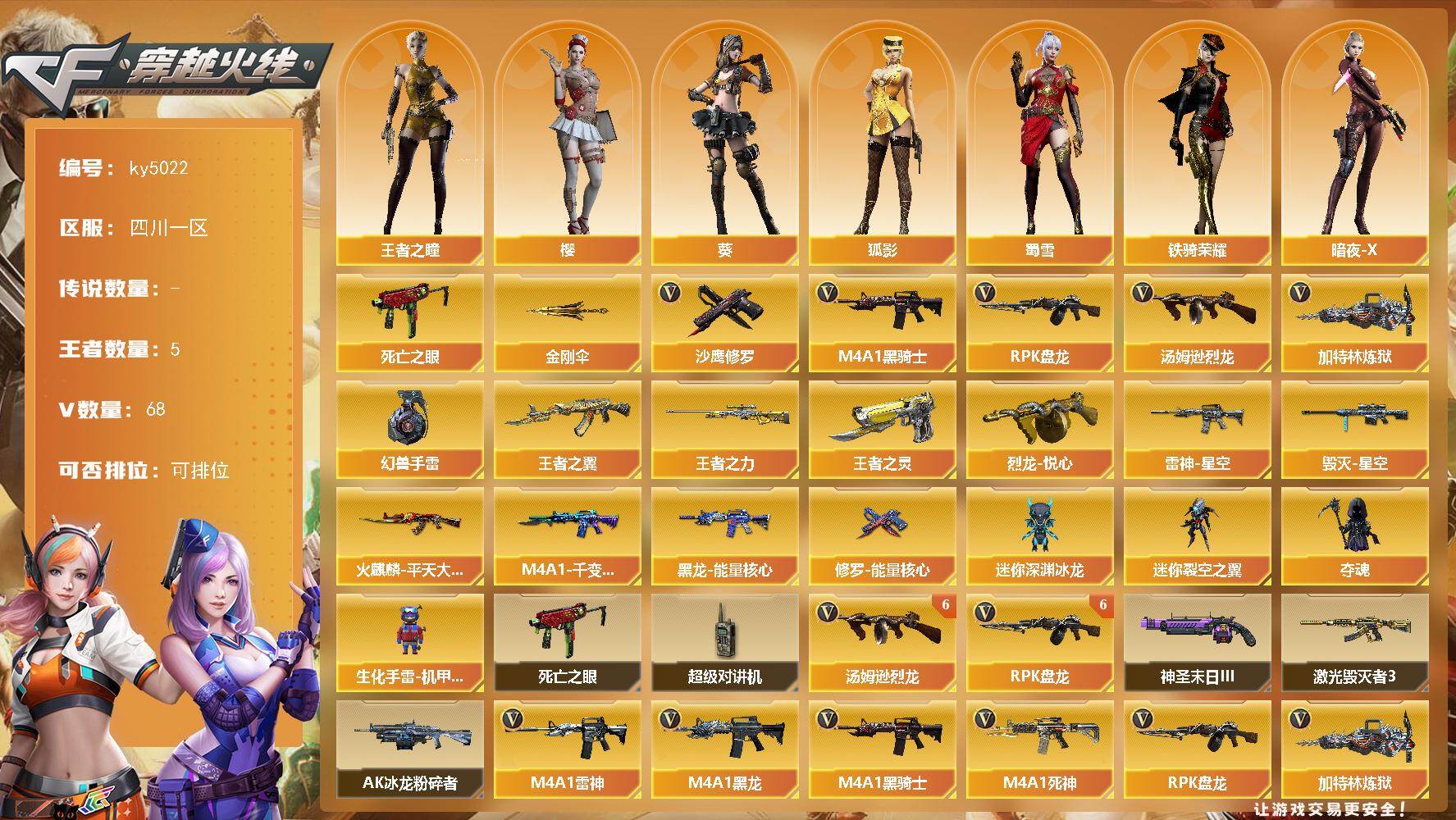 四川一区-68V-5王者-0炫金【热门武器】:死亡之眼,M4A1-黑骑士*2