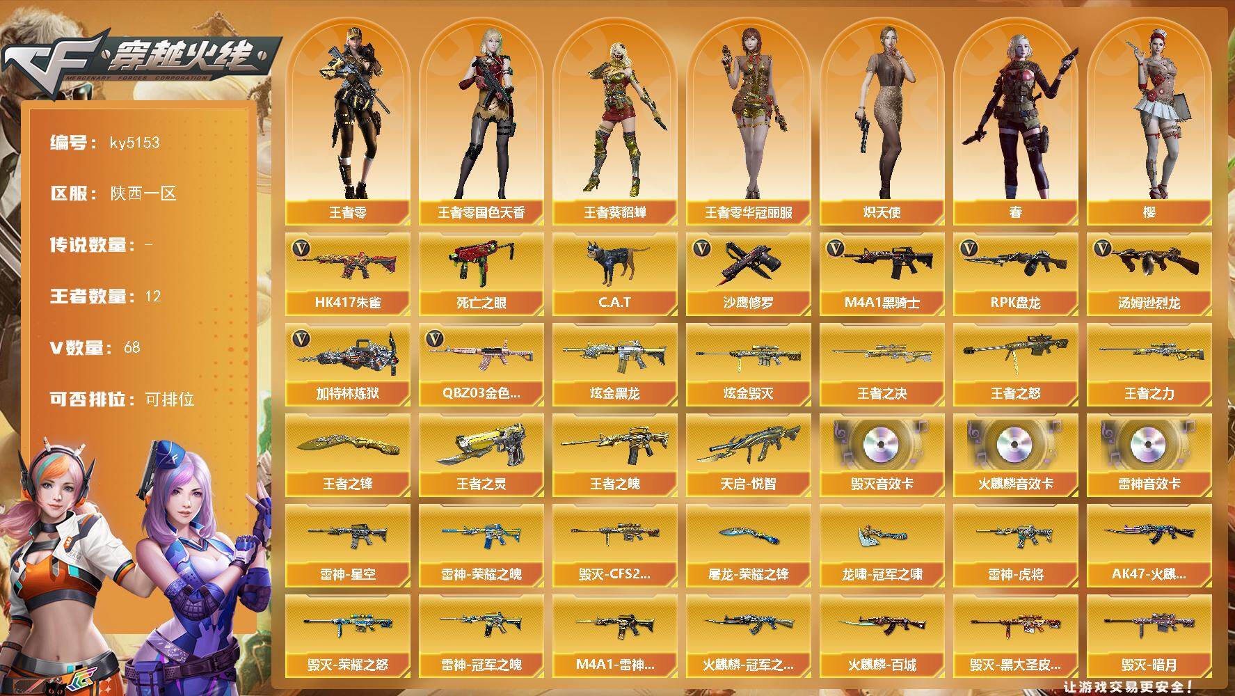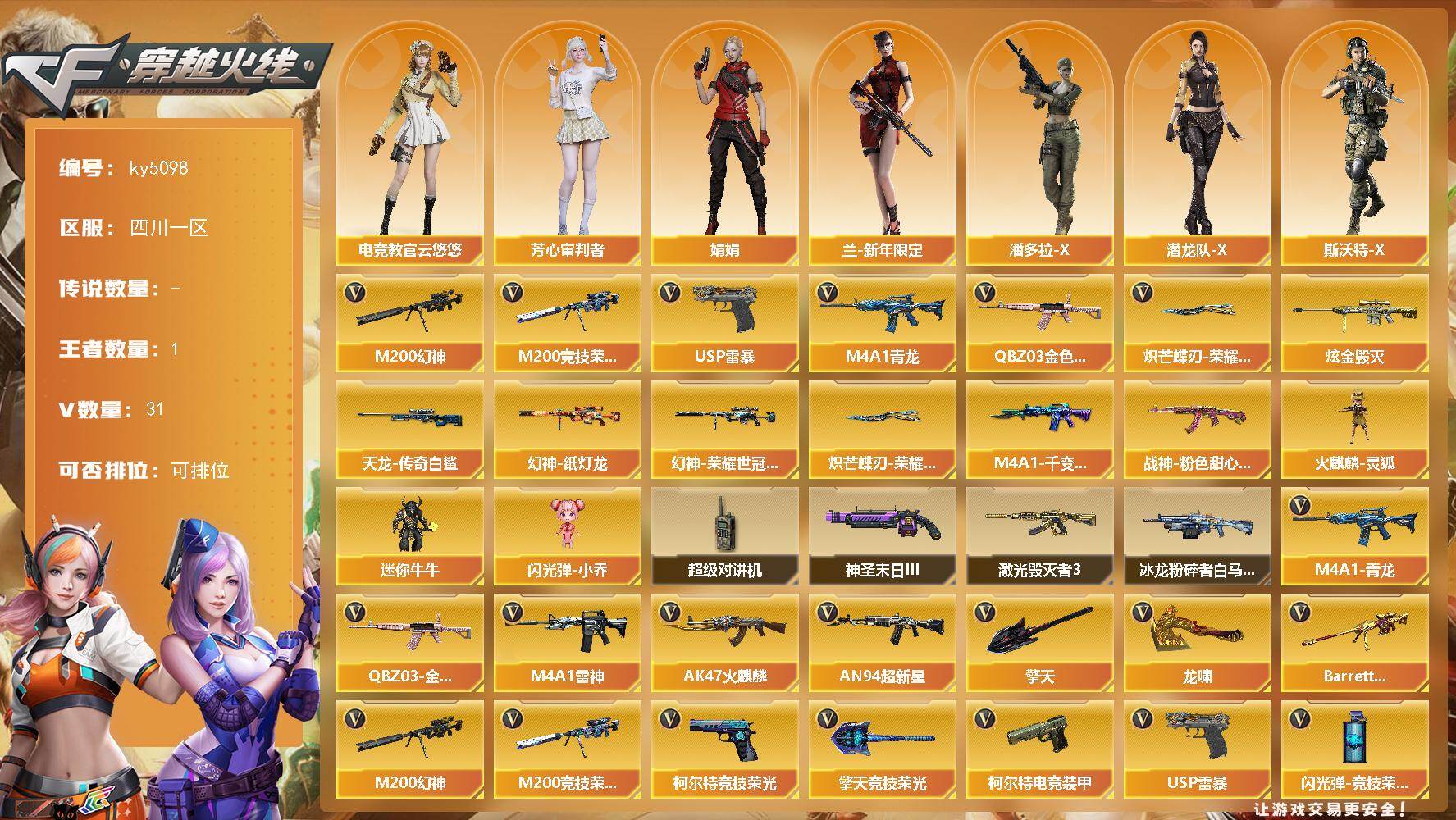 四川一区-31V-1王者-1炫金【热门武器】:QBZ03-金色蔷薇,M4A1