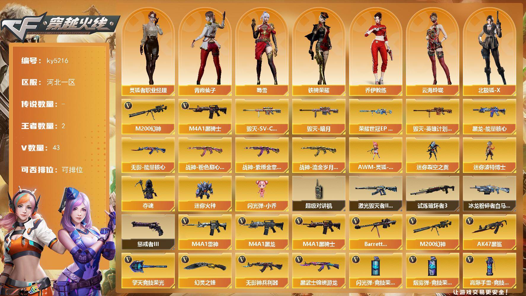 河北一区-43V-2王者-0炫金【热门武器】:M200-幻神,M4A1-黑骑