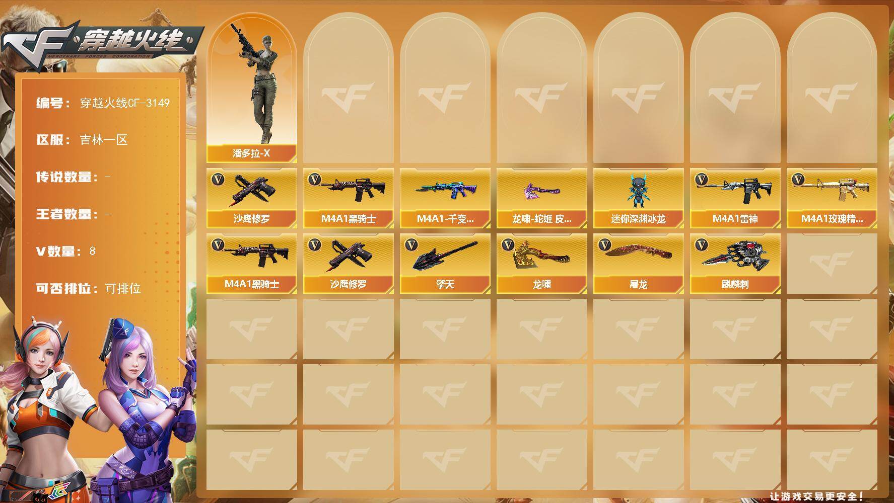 吉林一区-8V-0王者-0炫金【热门武器】:M4A1-黑骑士,沙鹰-修罗【