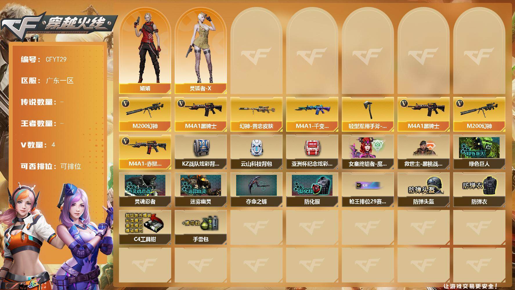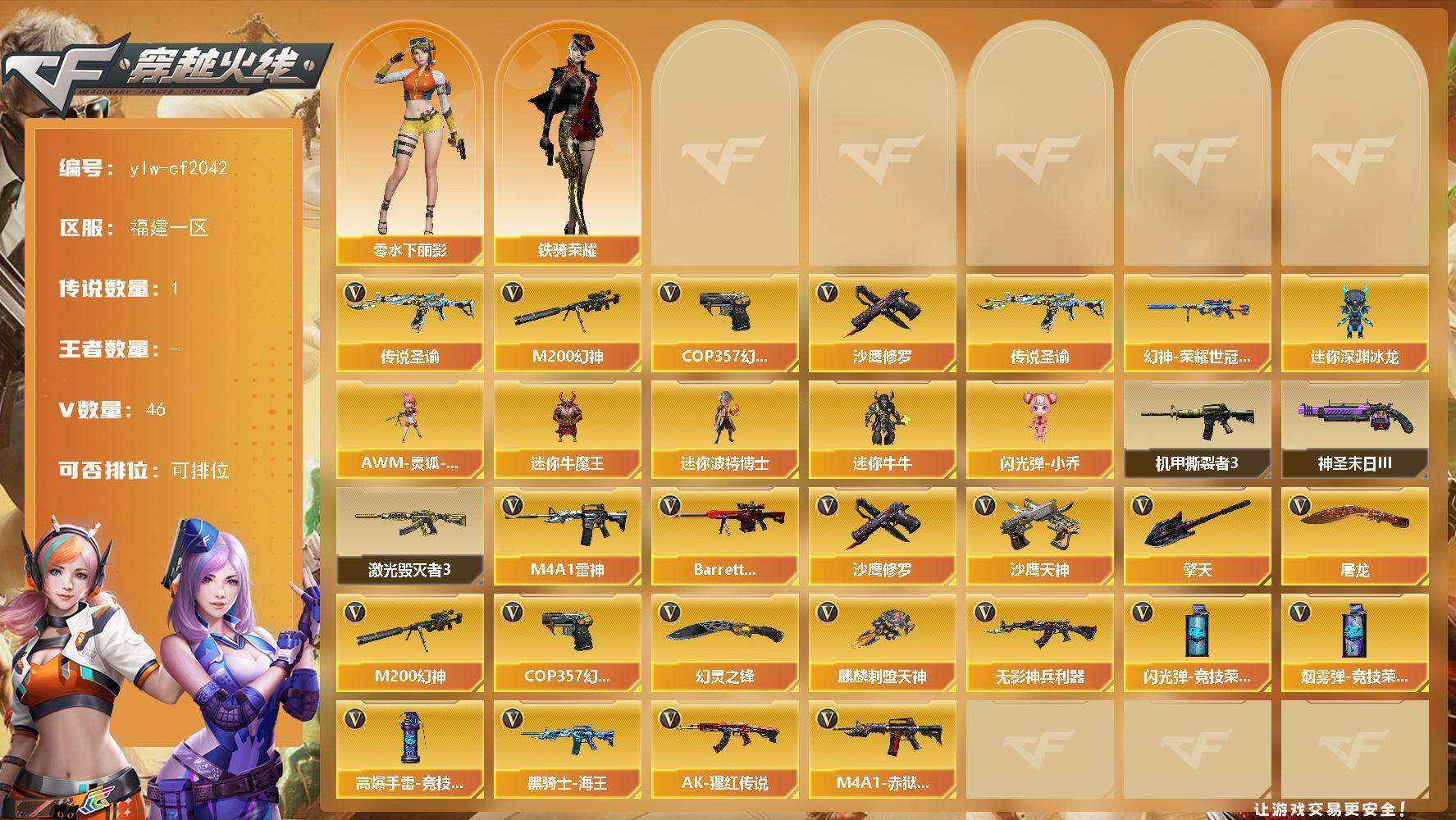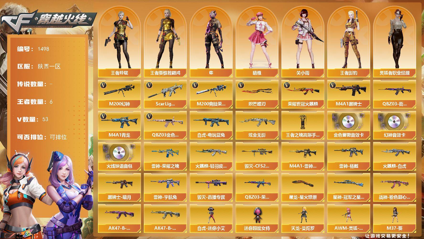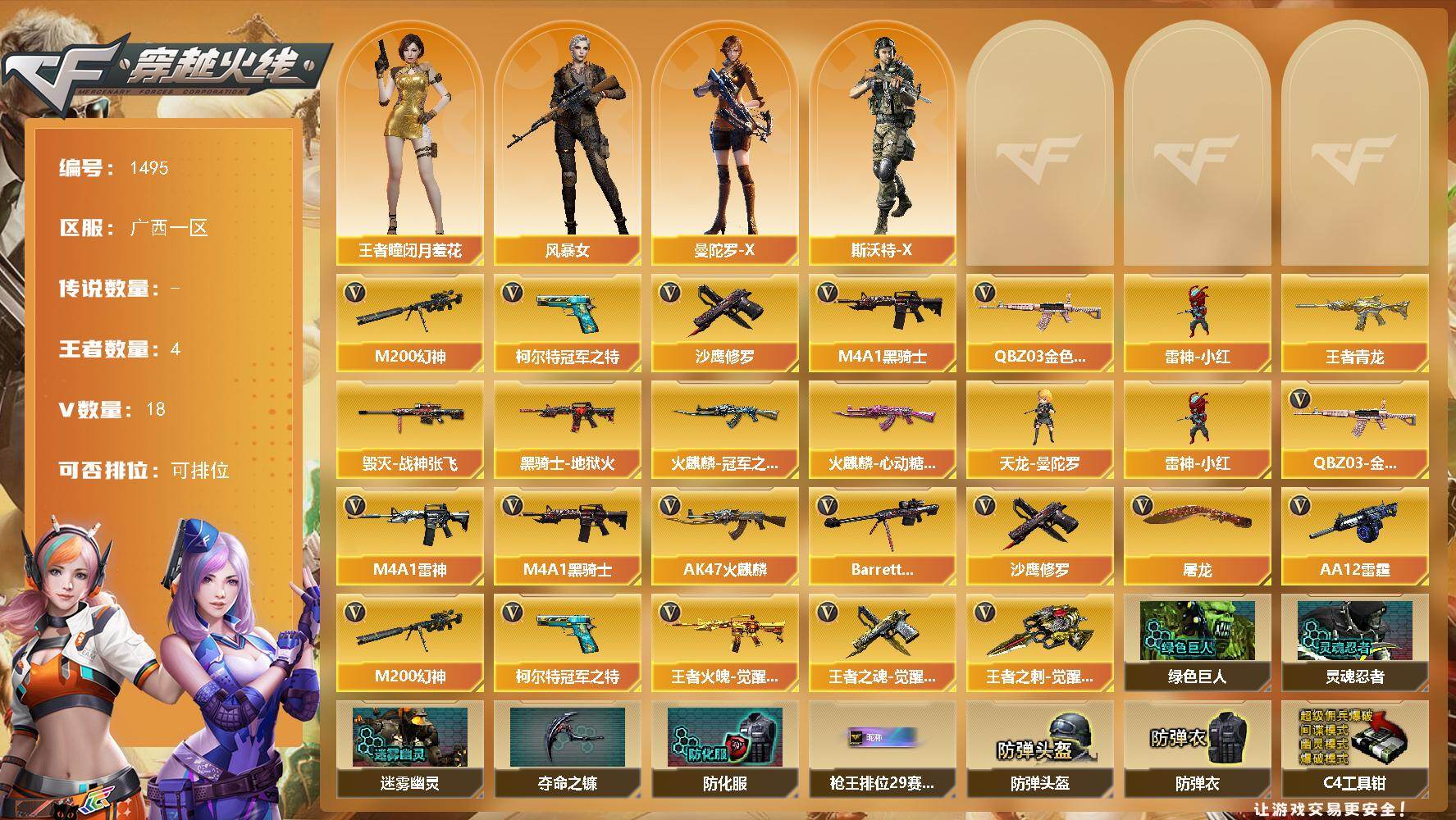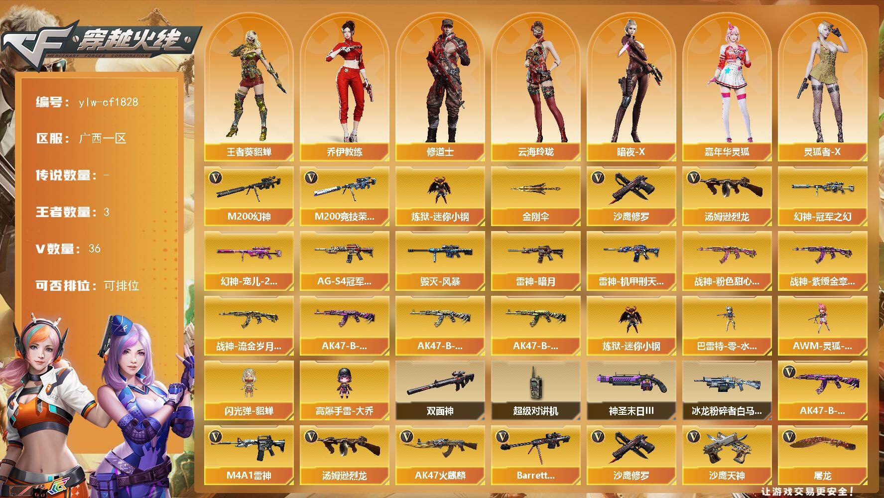 广西一区-36V-3王者-0炫金【热门武器】:M200-幻神,M200-竞技