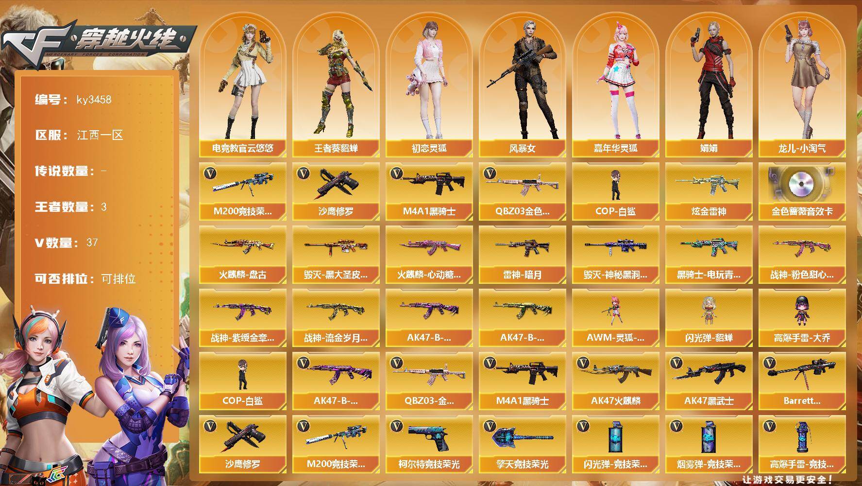 江西一区-37V-3王者-1炫金【热门武器】:QBZ03-金色蔷薇,M200