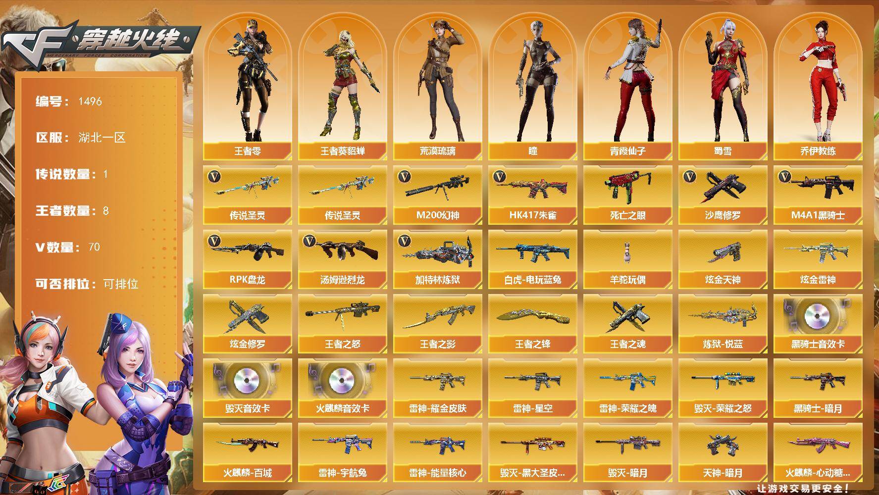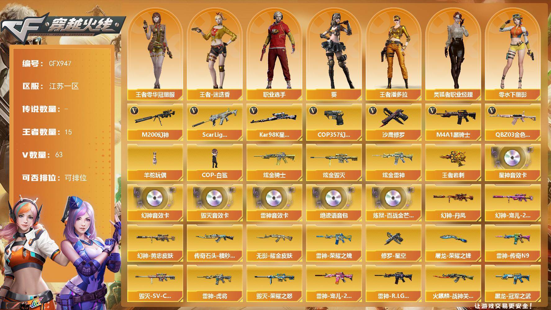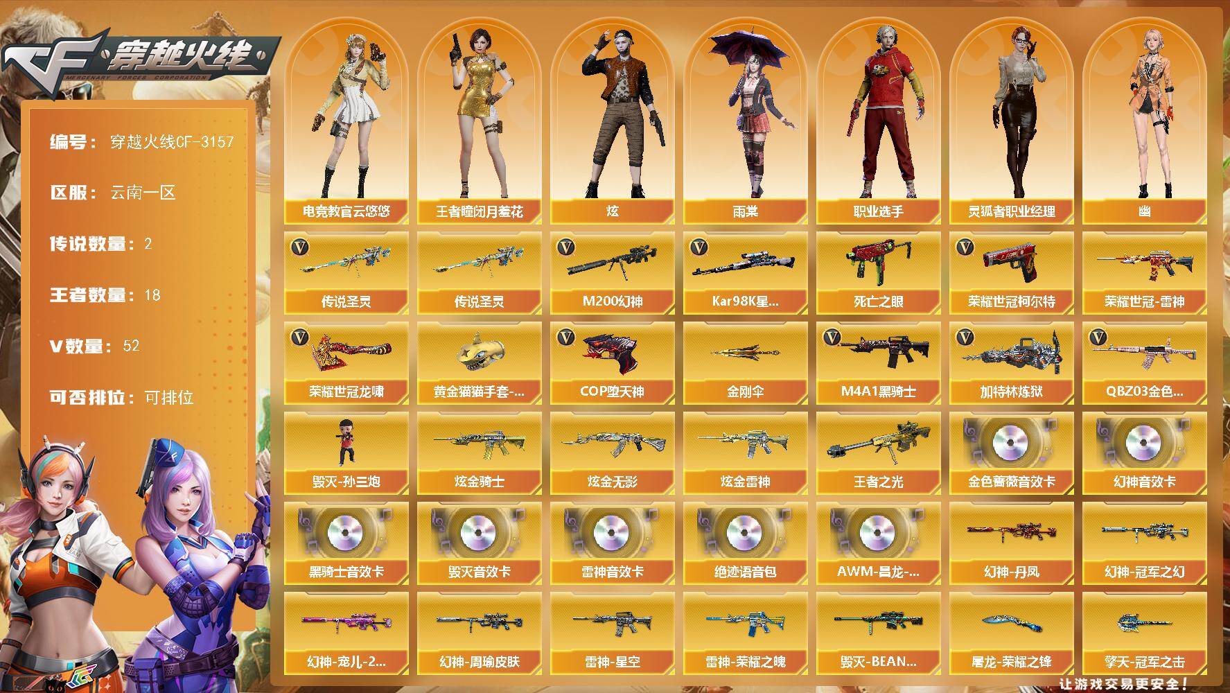 云南一区-52V-18王者-3炫金【传说武器】:传说圣灵【传说角色】:传说