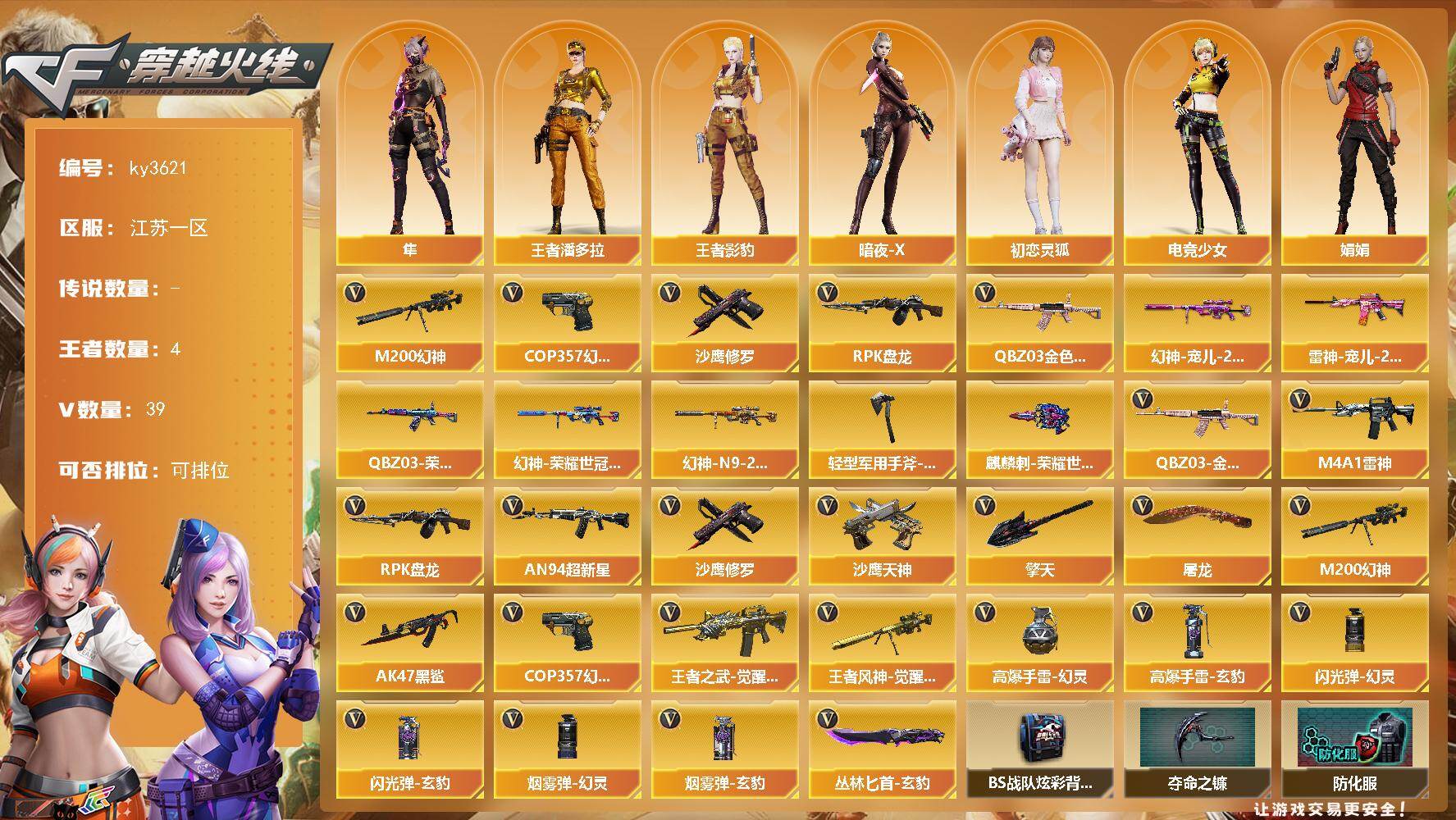 江苏一区-39V-4王者-0炫金【热门武器】:QBZ03-金色蔷薇,M200