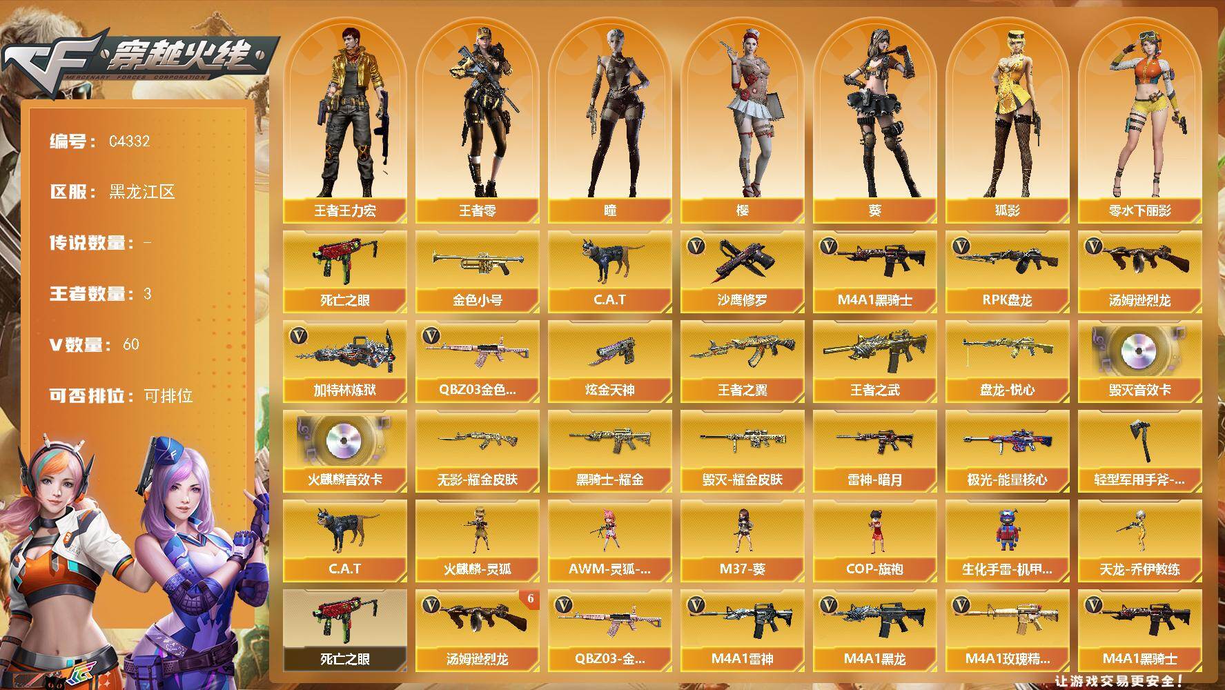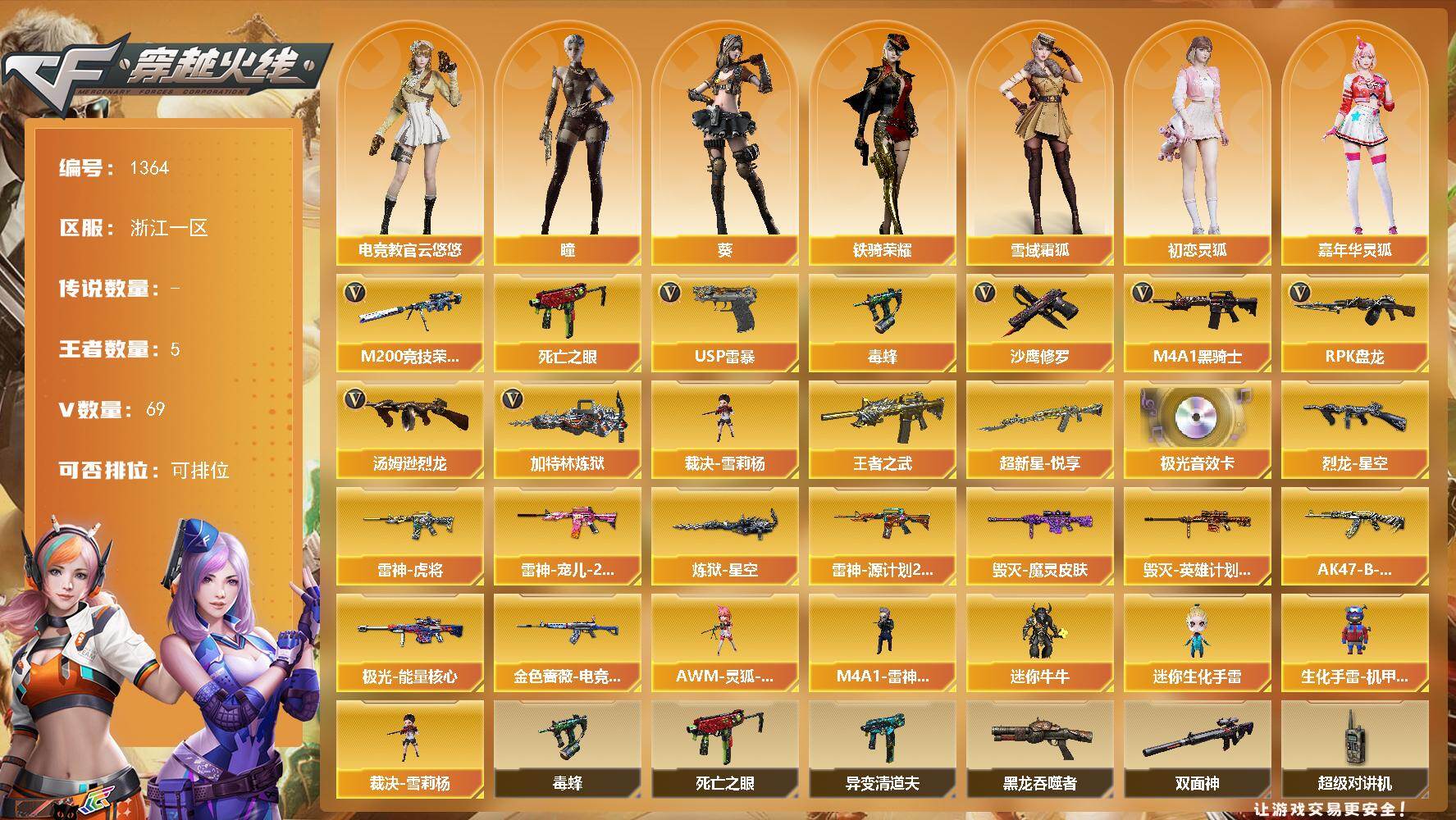 浙江一区-69V-5王者-0炫金【热门武器】:M200-竞技荣光,死亡之眼,
