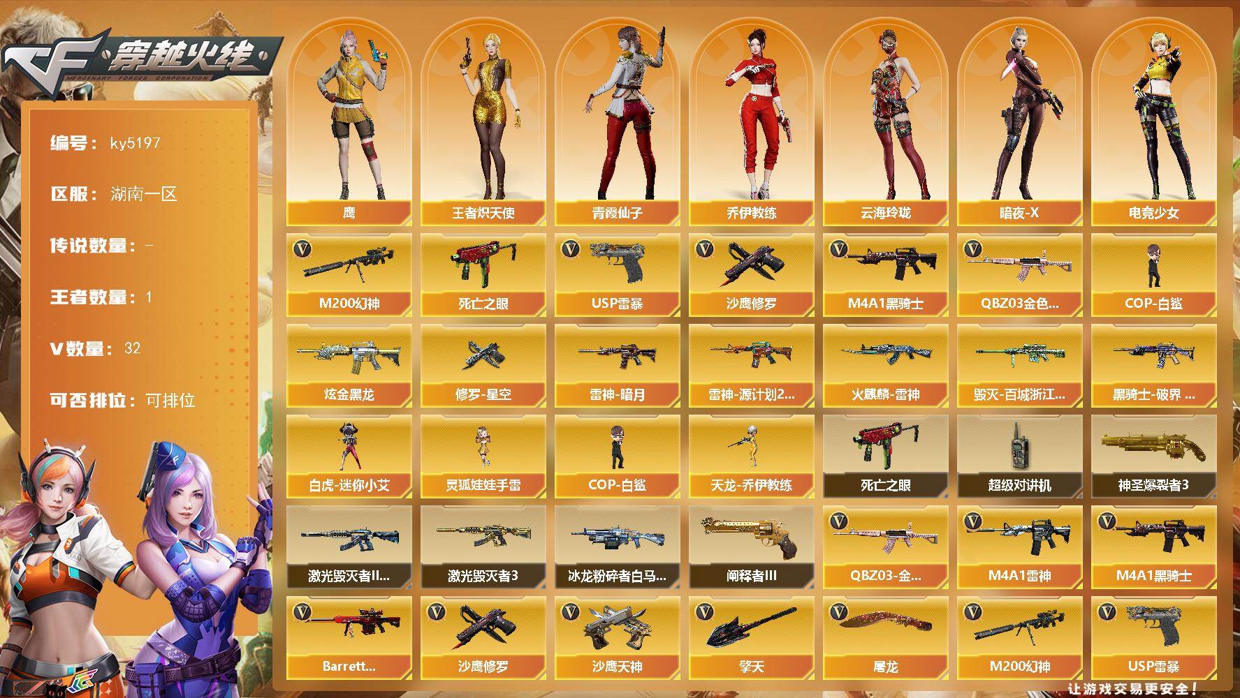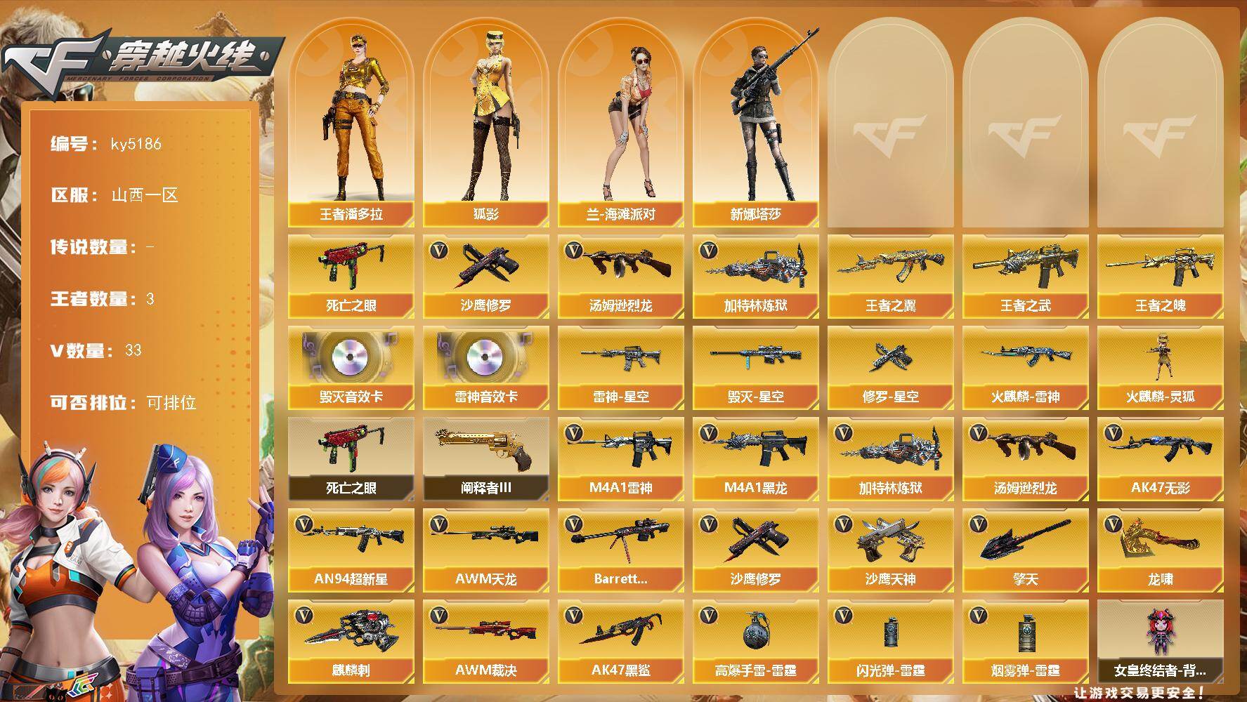 山西一区-33V-3王者-0炫金【热门武器】:死亡之眼,汤姆逊-烈龙*2,加