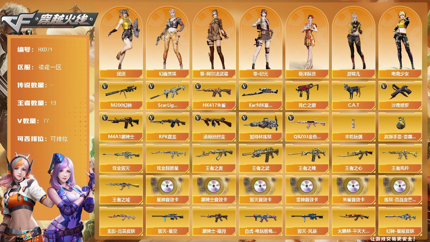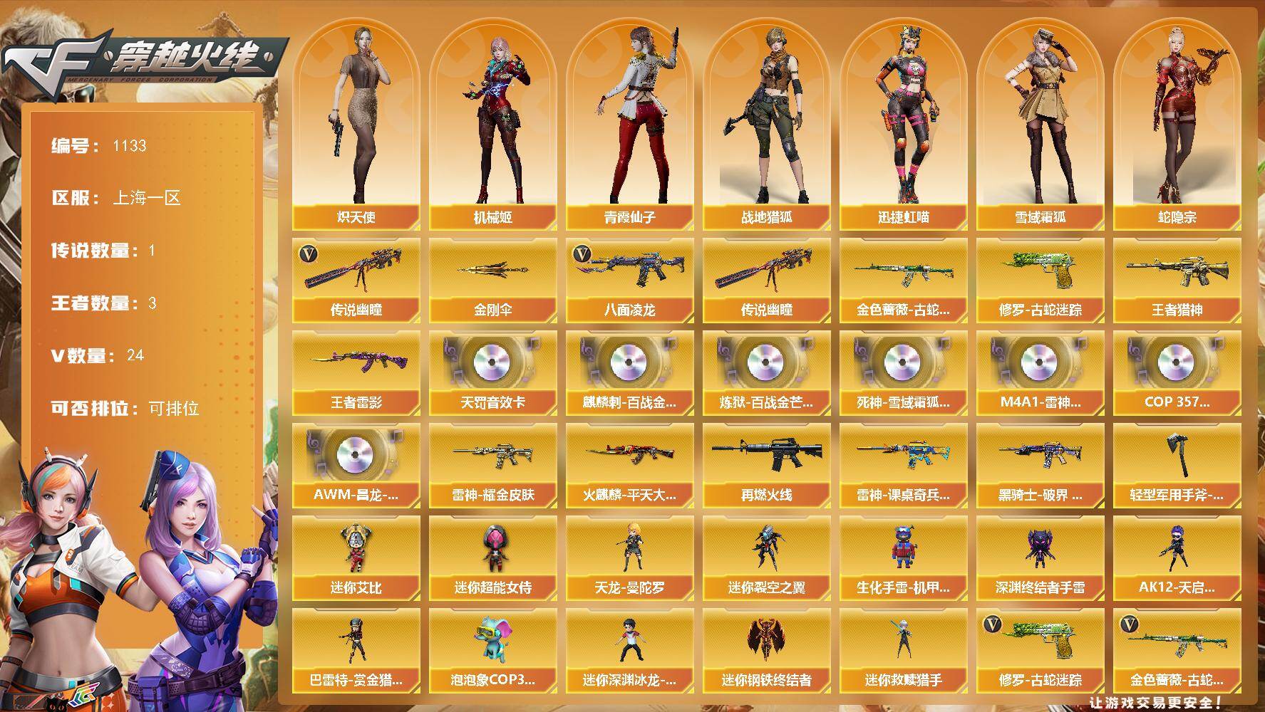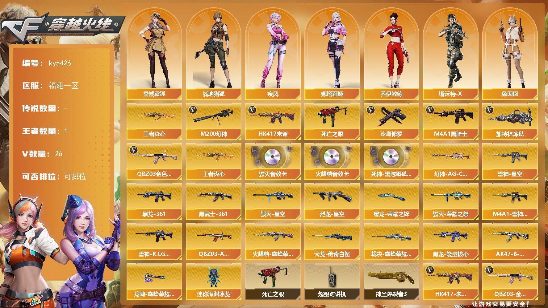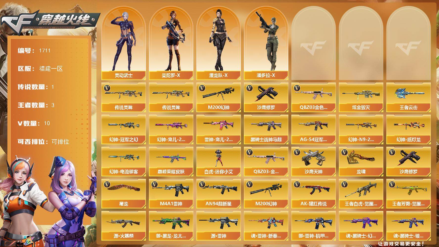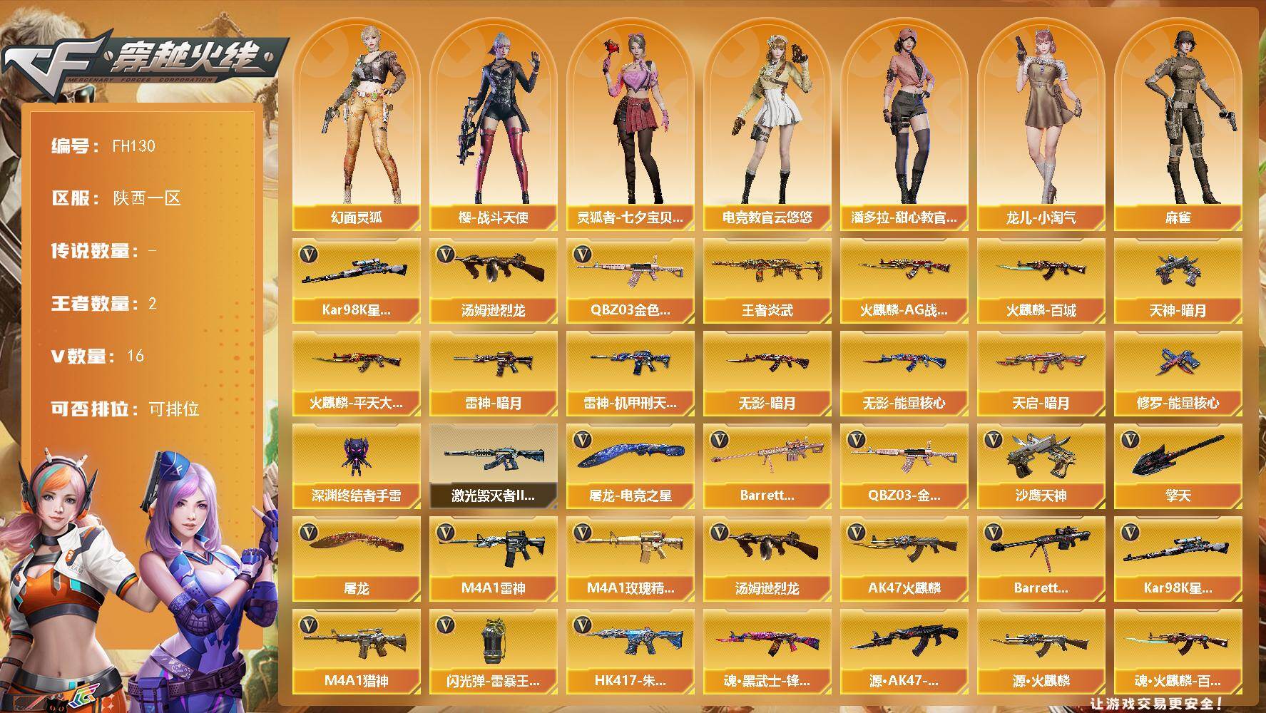 陕西一区-18V-2王者武器数-0炫金武器数