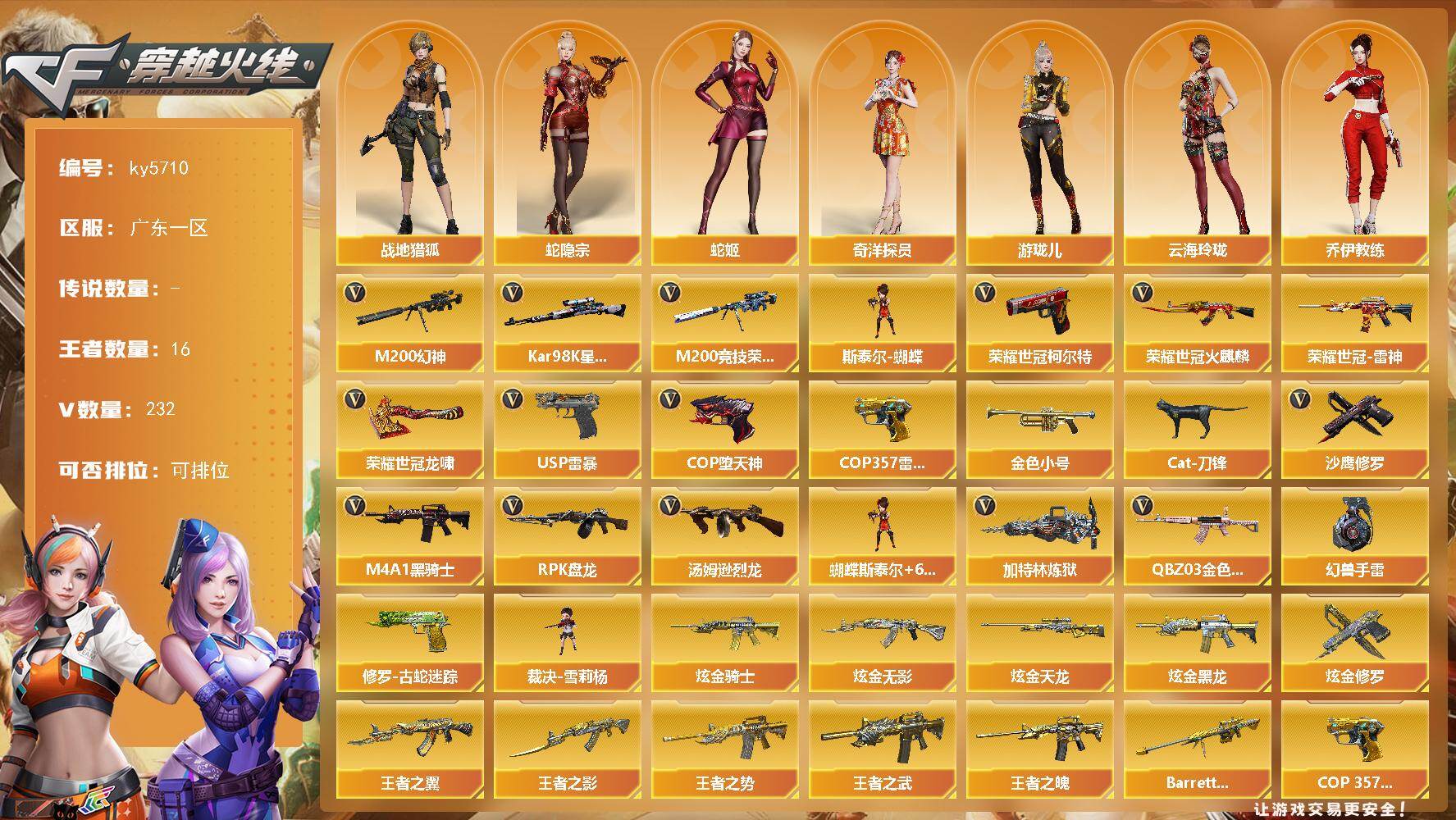 广东一区-239V-16王者武器数-5炫金武器数