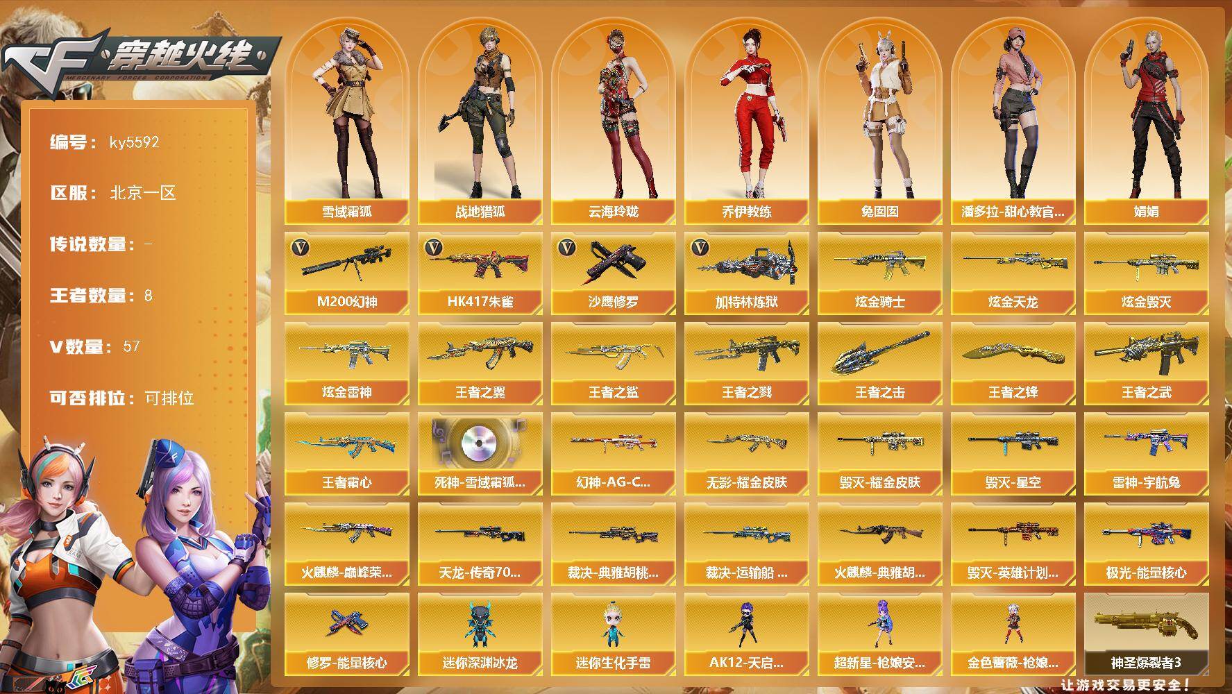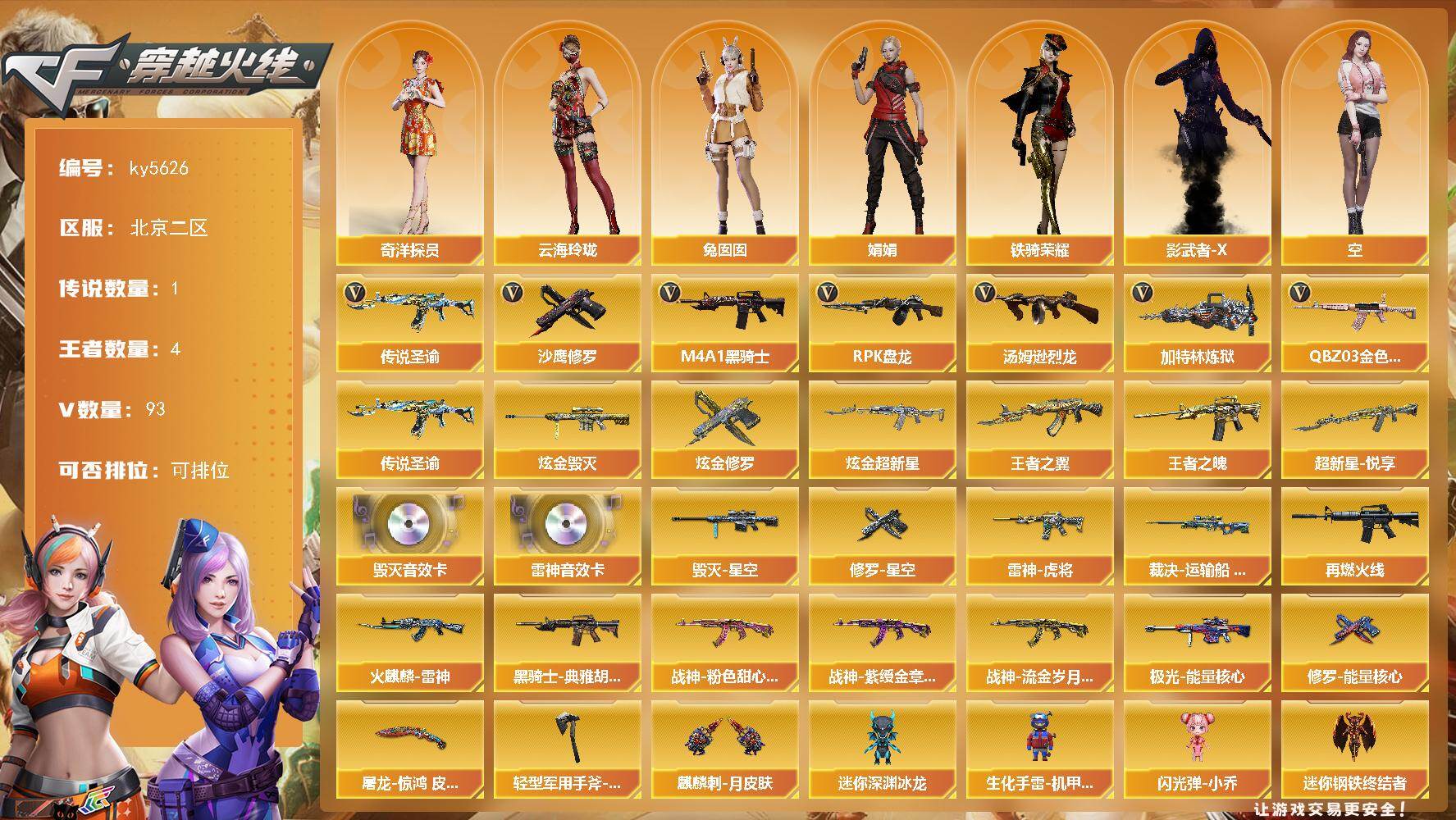 北京二区-94V-4王者武器数-7炫金武