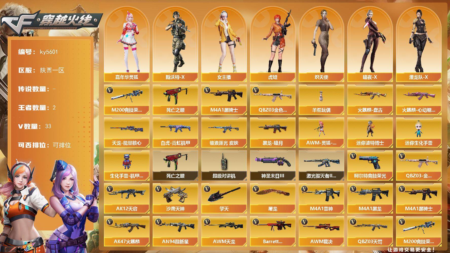 陕西一区-35V-2王者武器数-0炫金武