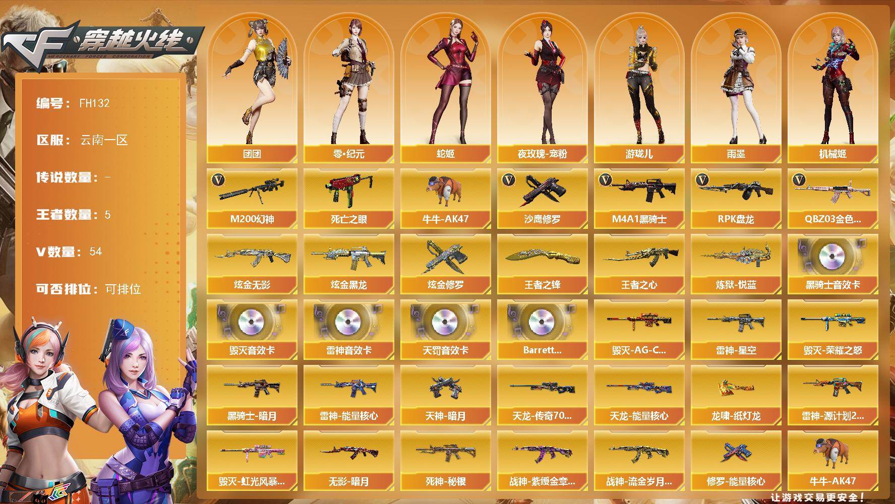 云南一区-55V-5王者武器数-4炫金武器数