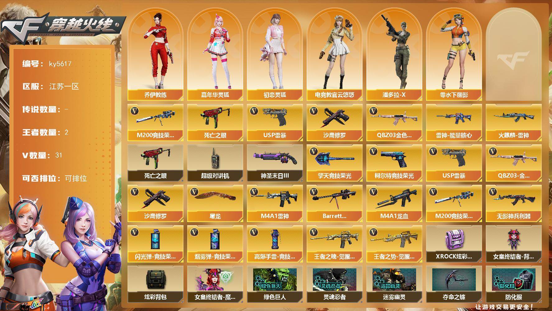 江苏一区-33V-2王者武器数-0炫金武