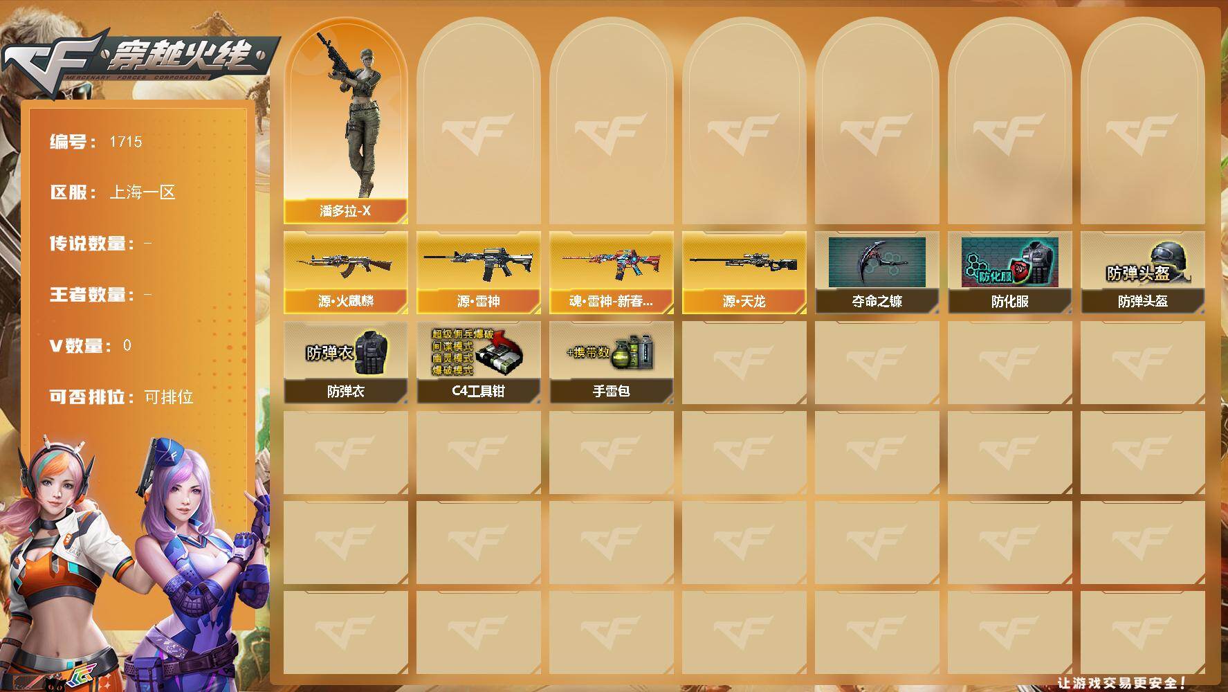 上海一区-0V-0王者武器数-0炫金武器数【角色】:潘多拉-X【源级武器】