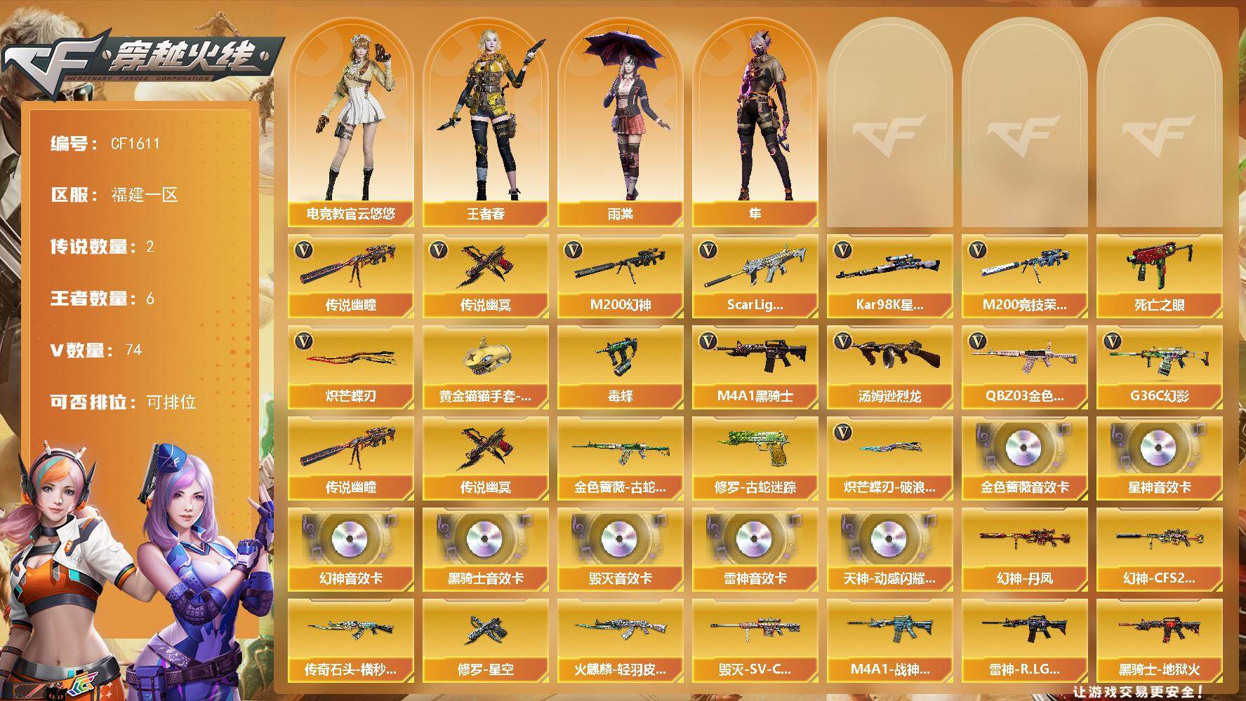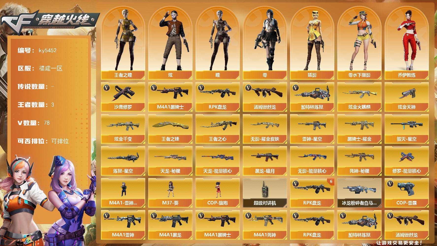 福建一区-79V-3王者武器数-4炫金武器数【热门武器】:M4A1-黑骑士,