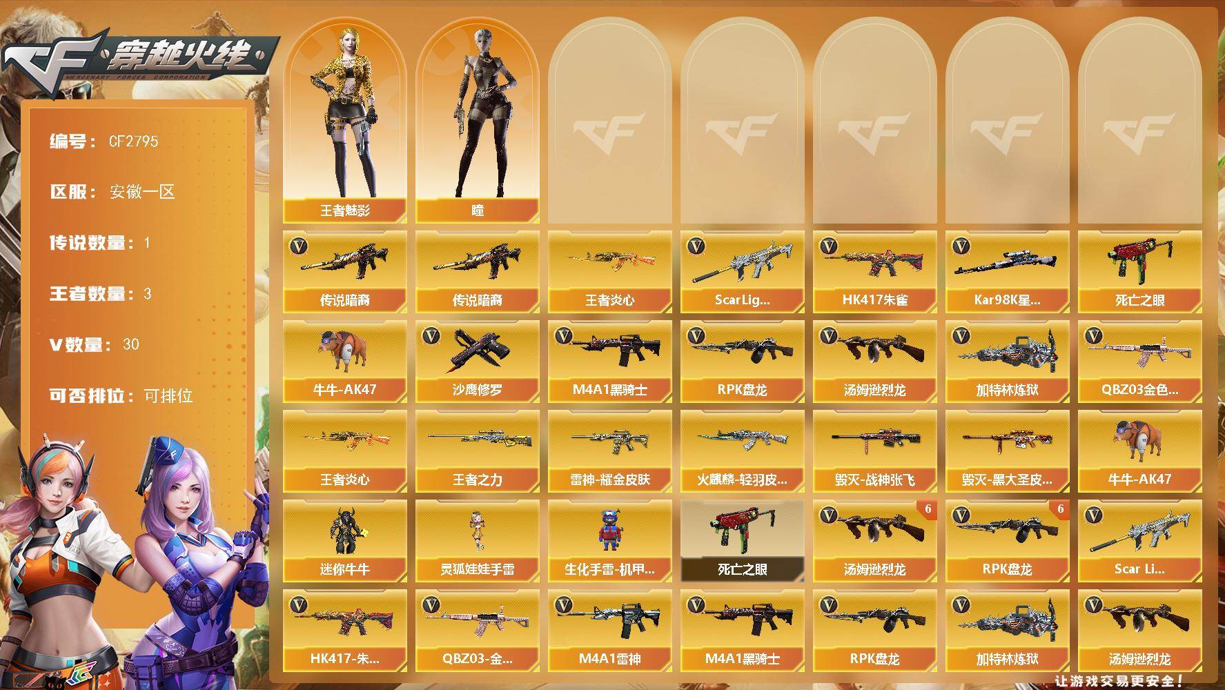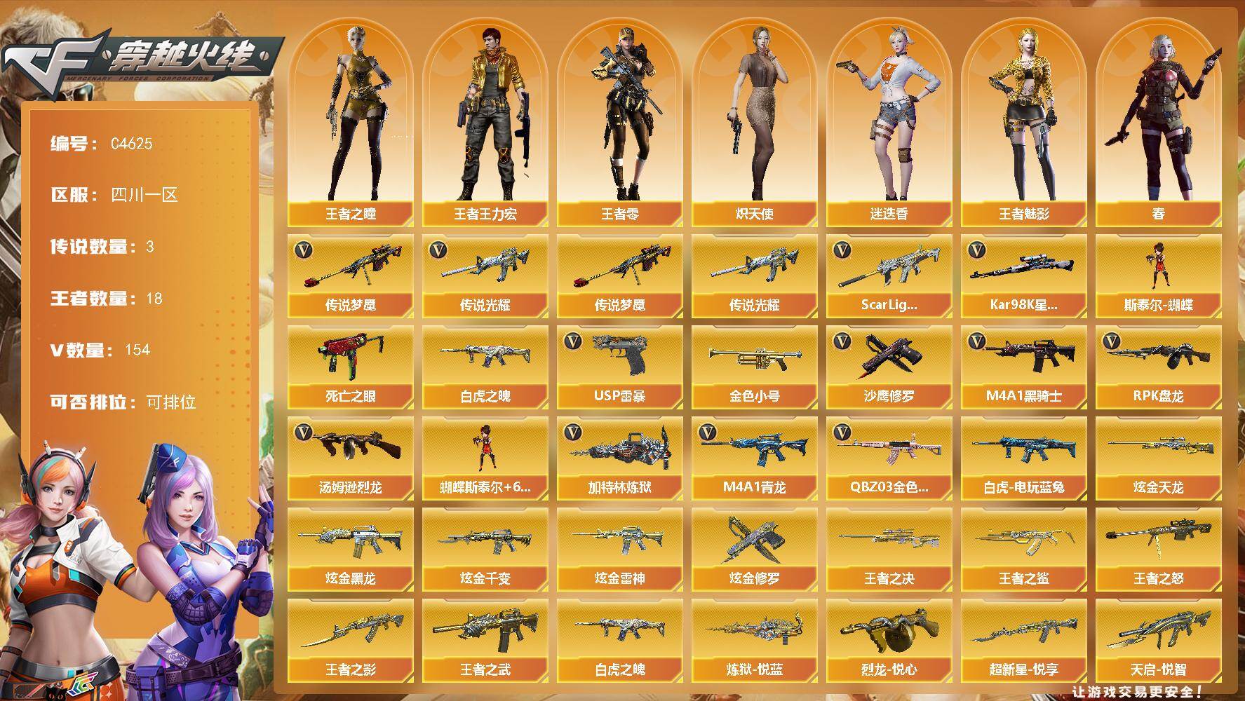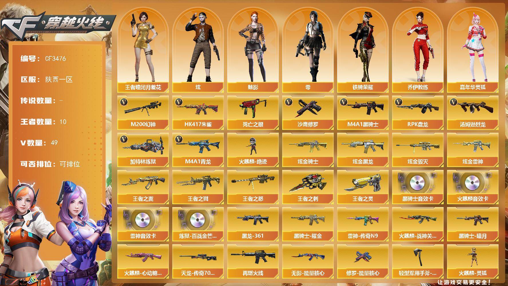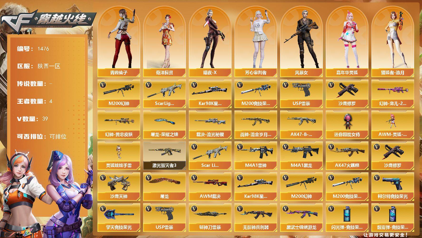 陕西一区-39V-4王者武器数-0炫金武器数【热门武器】:Scar Ligh