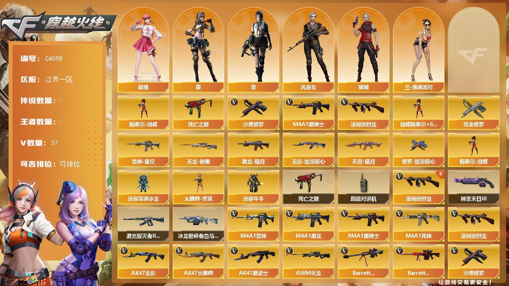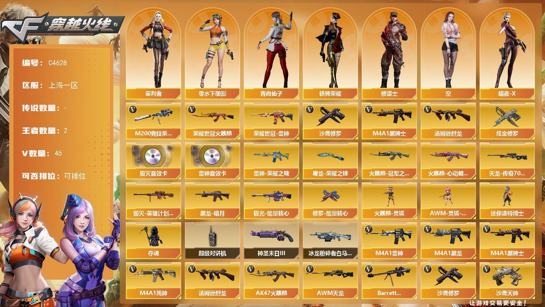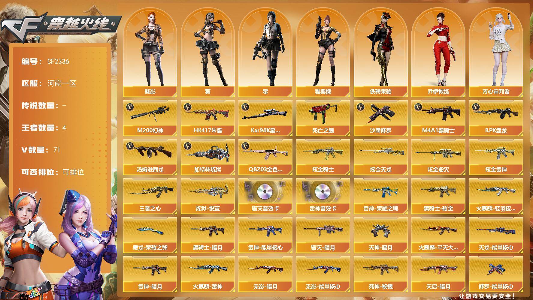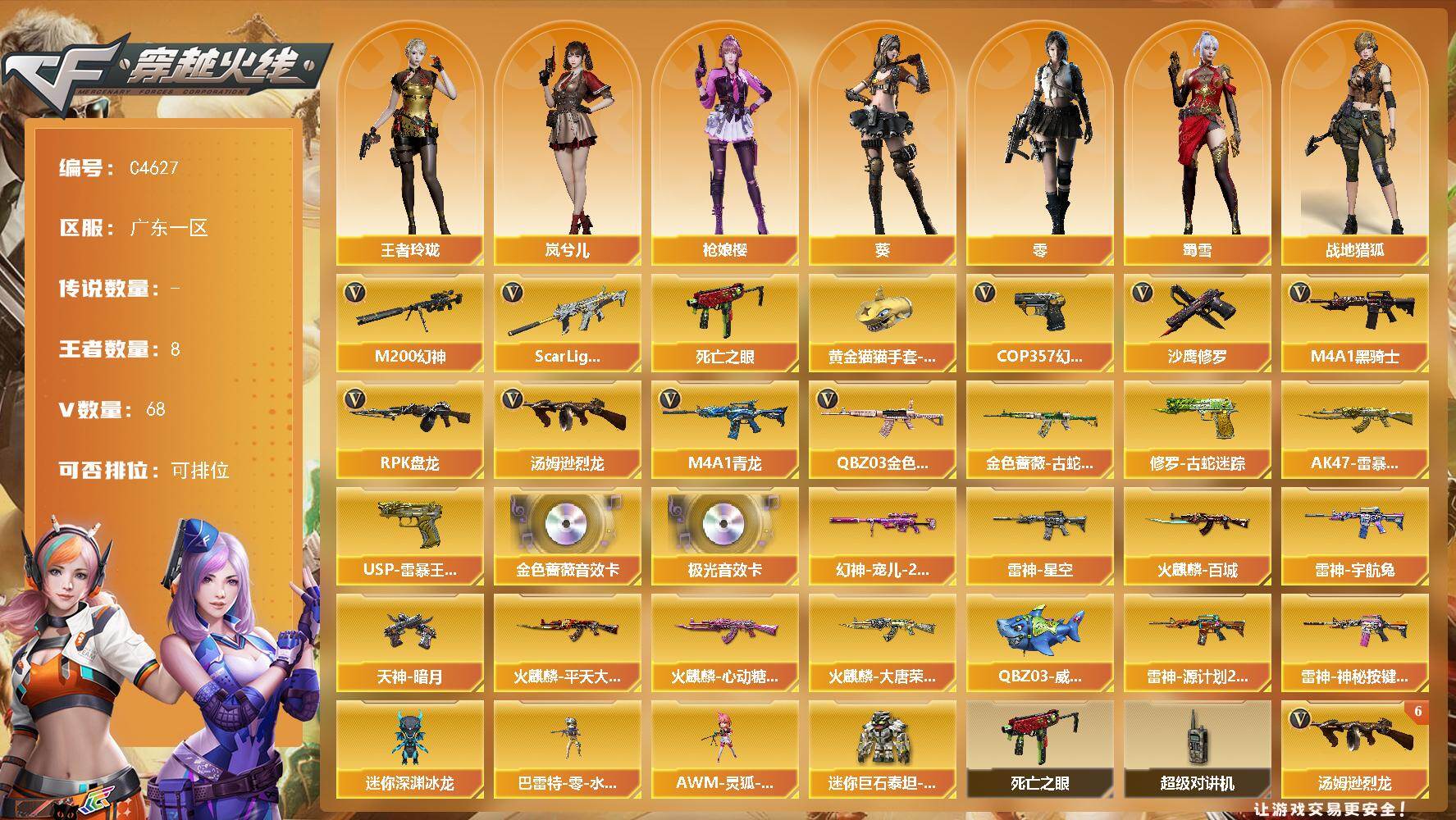 陕西一区-39V-4王者武器数-0炫金武器数【热门武器】:Scar Ligh