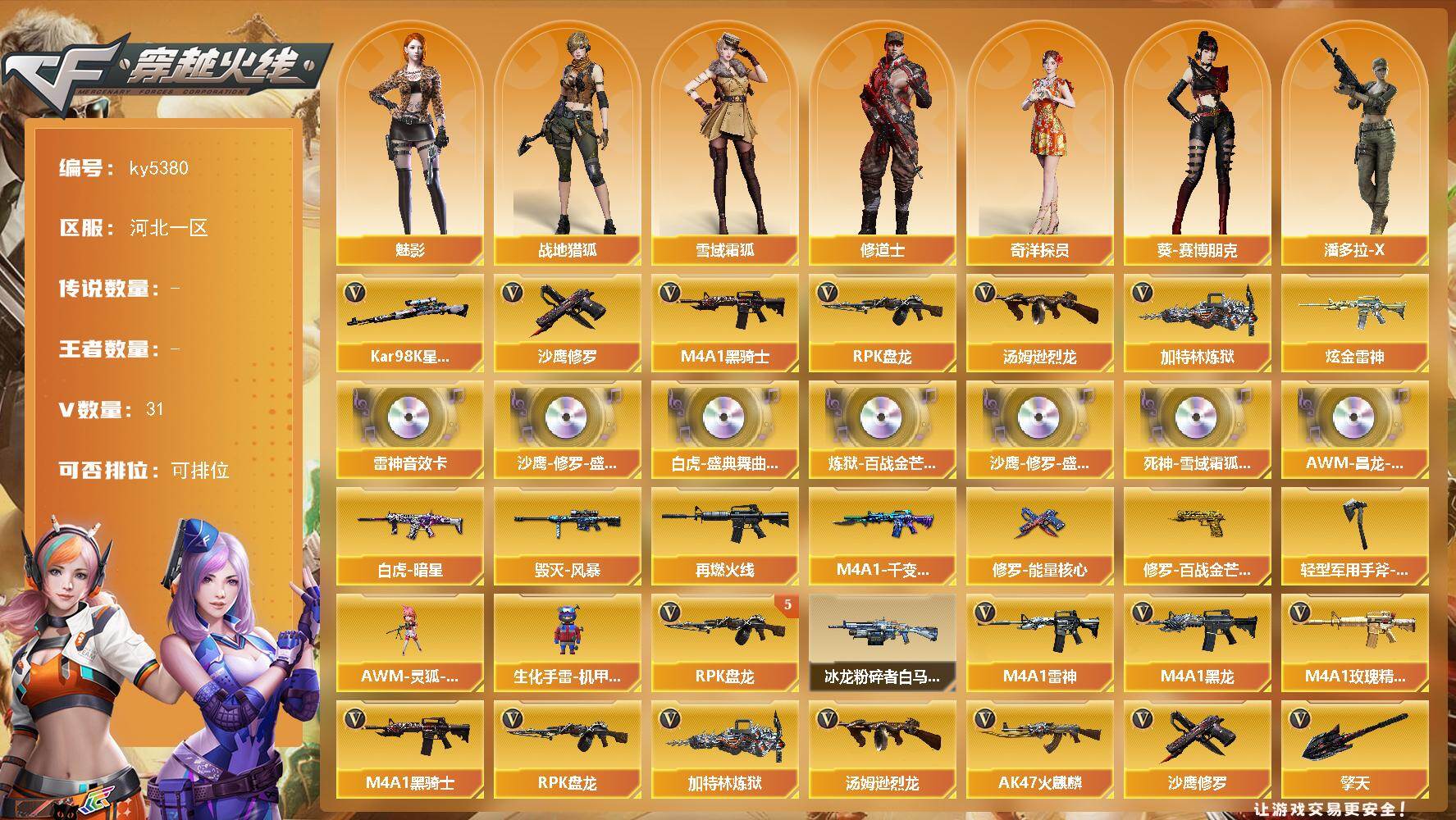 河北一区-30V-0王者武器数-1炫金武器数【热门武器】:Kar98K-星神