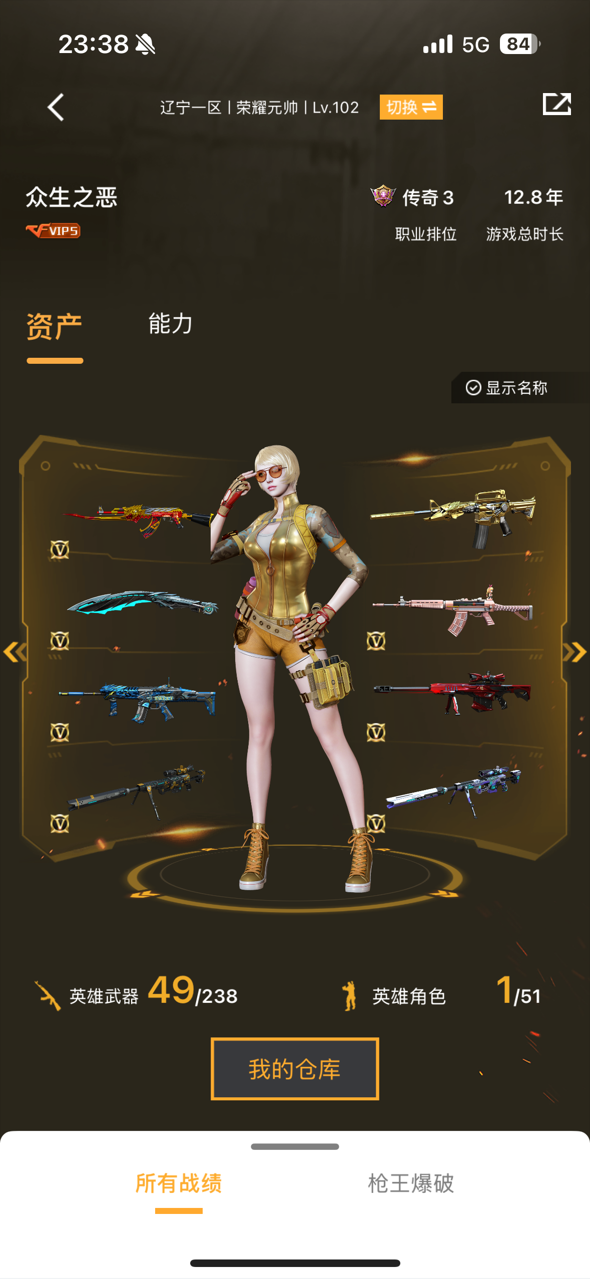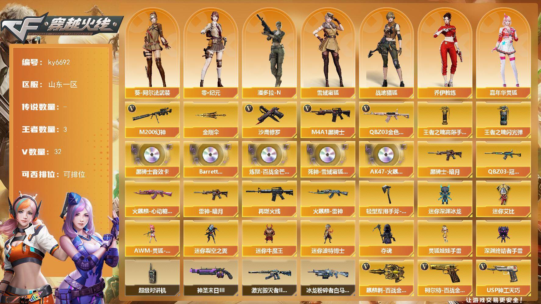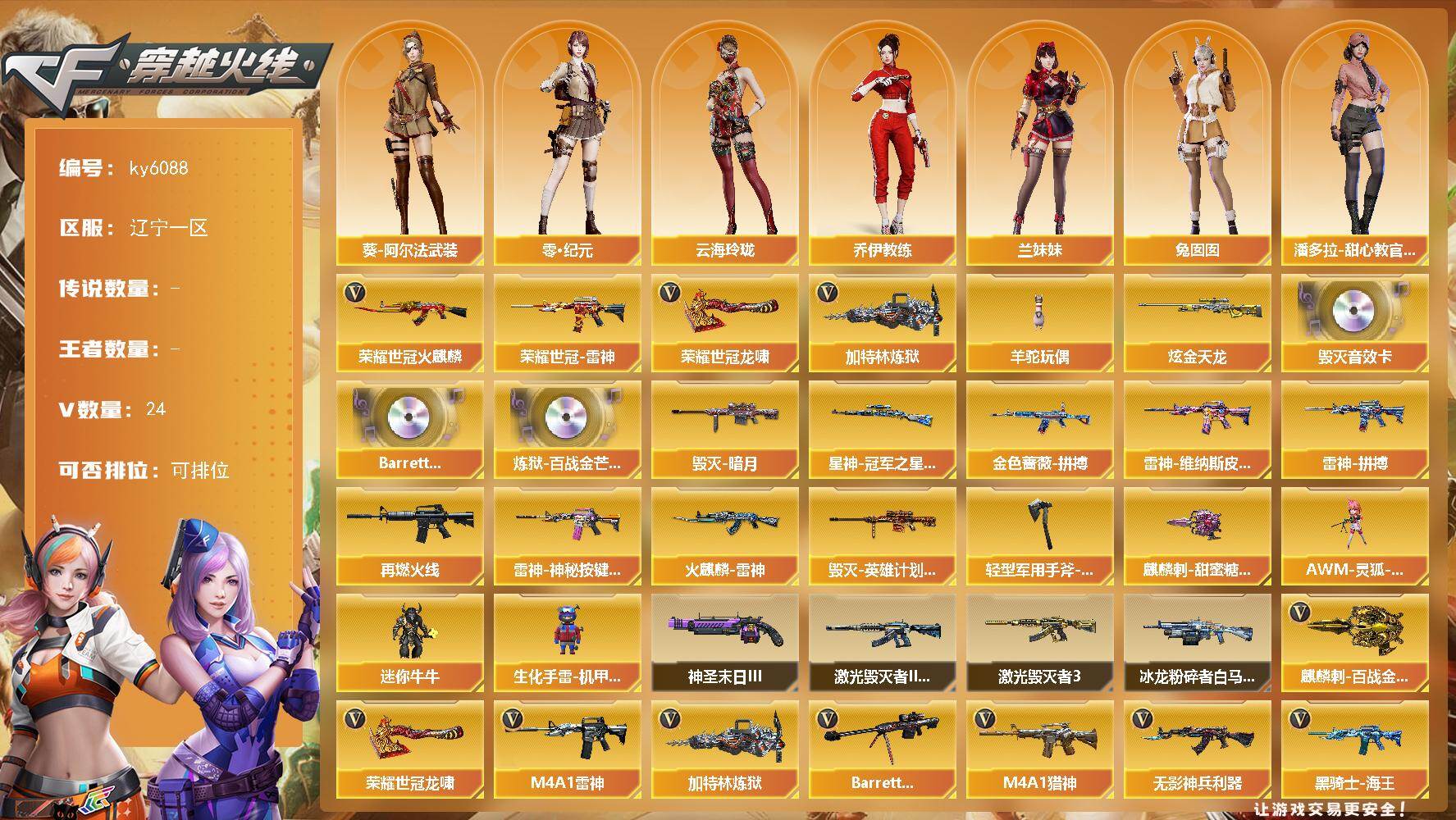 辽宁一区-29V-0王者武器数-1炫金武器数【热门武器】:荣耀世冠-火麒麟