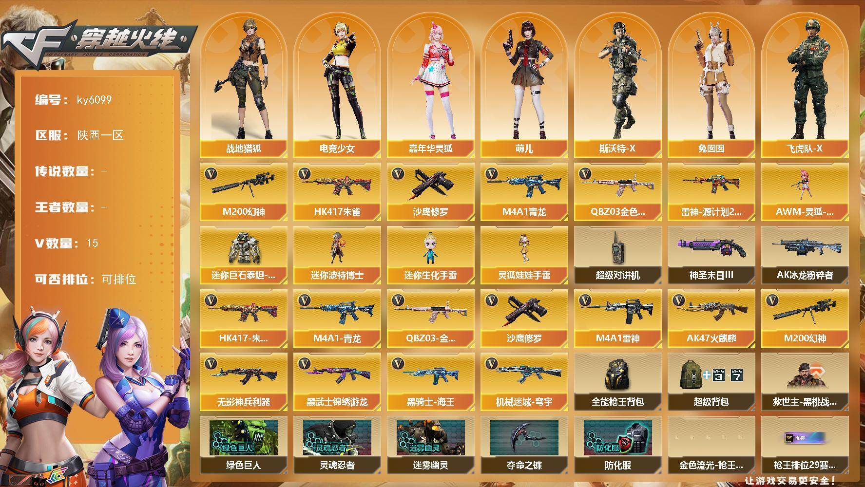 陕西一区-96V-13王者武器数-4炫金武器数【热门武器】:QBZ03-金