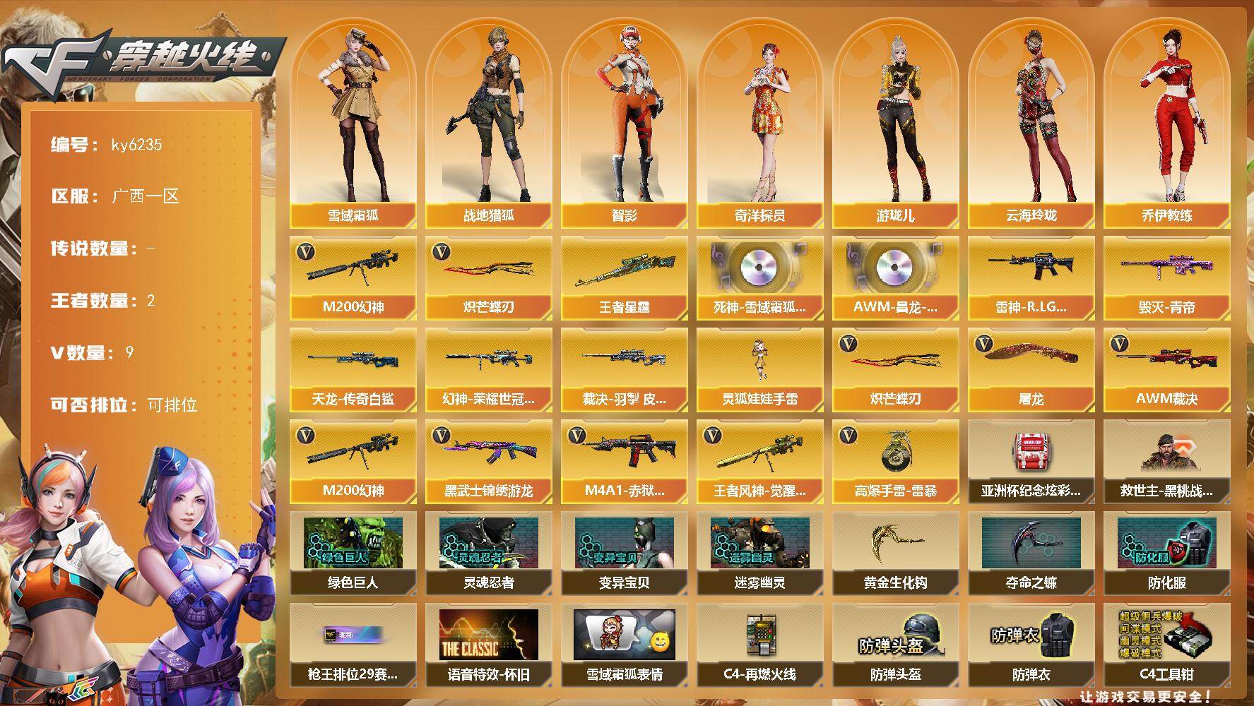 广西一区-9V-2王者武器数-0炫金武器数【热门武器】:M200-幻神,炽