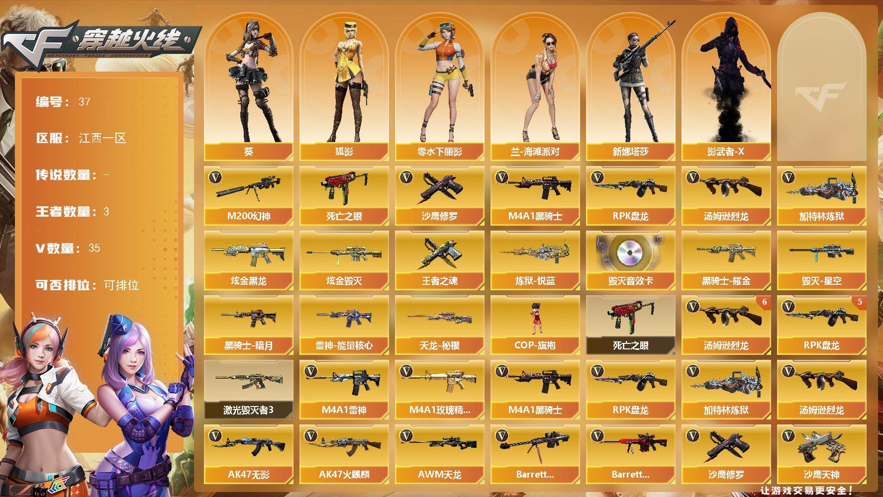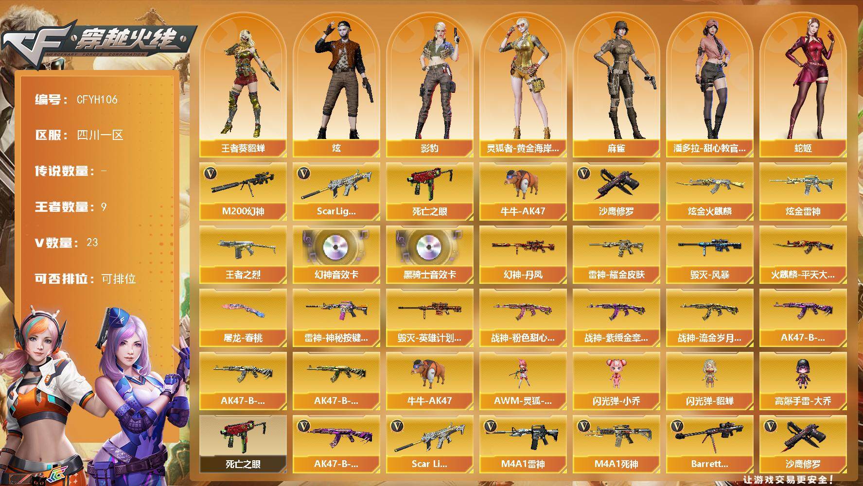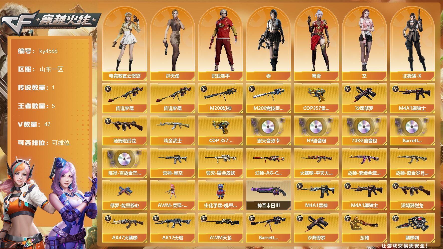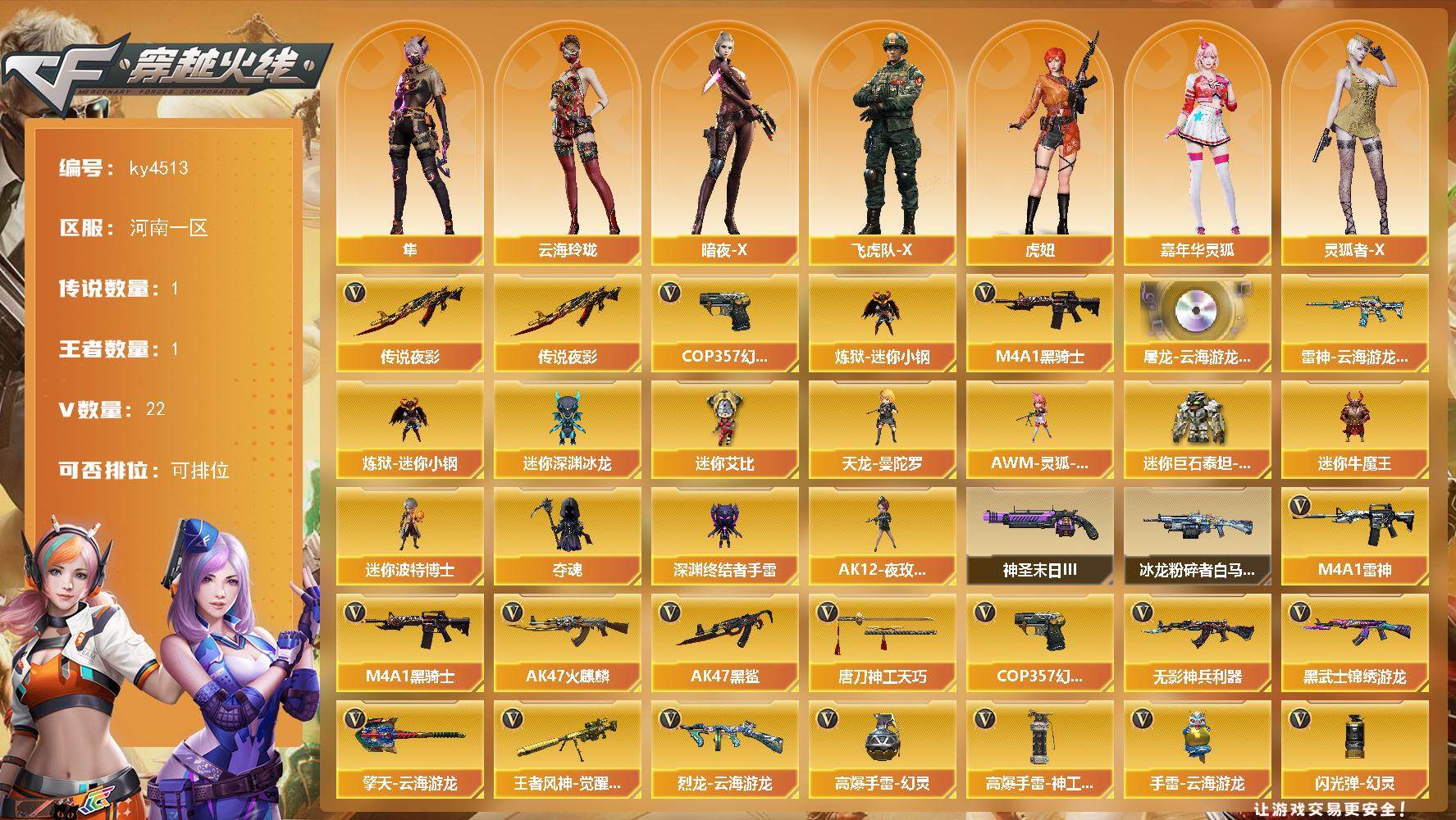 23V/70级/校官/1传说/5王者/1炫金/2英雄/传说破晓/传说影煞