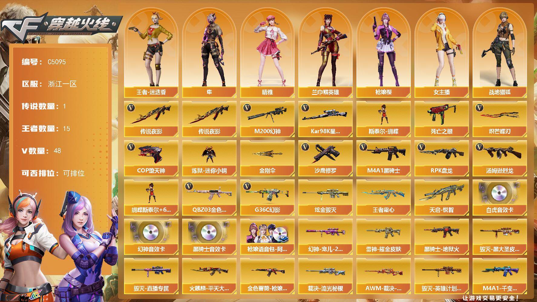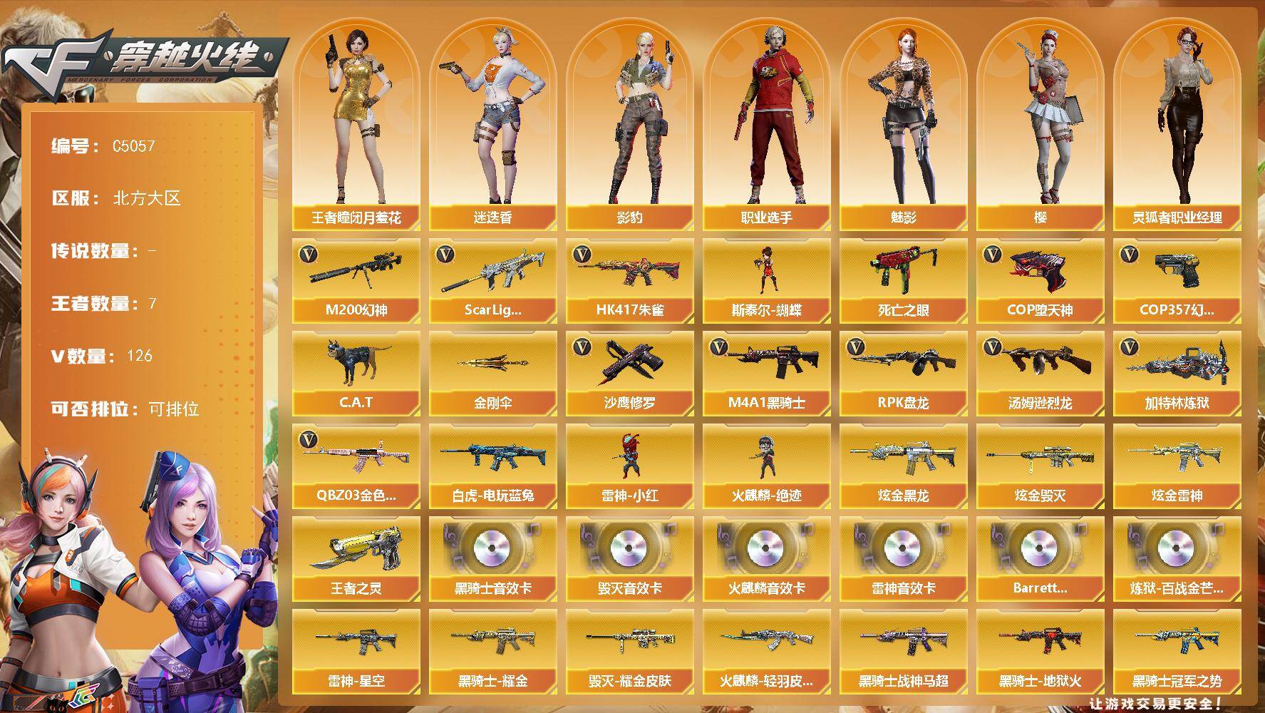 湖北一区-57V-3王者武器数-5炫金武器数【热门武器】:QBZ03-金色蔷
