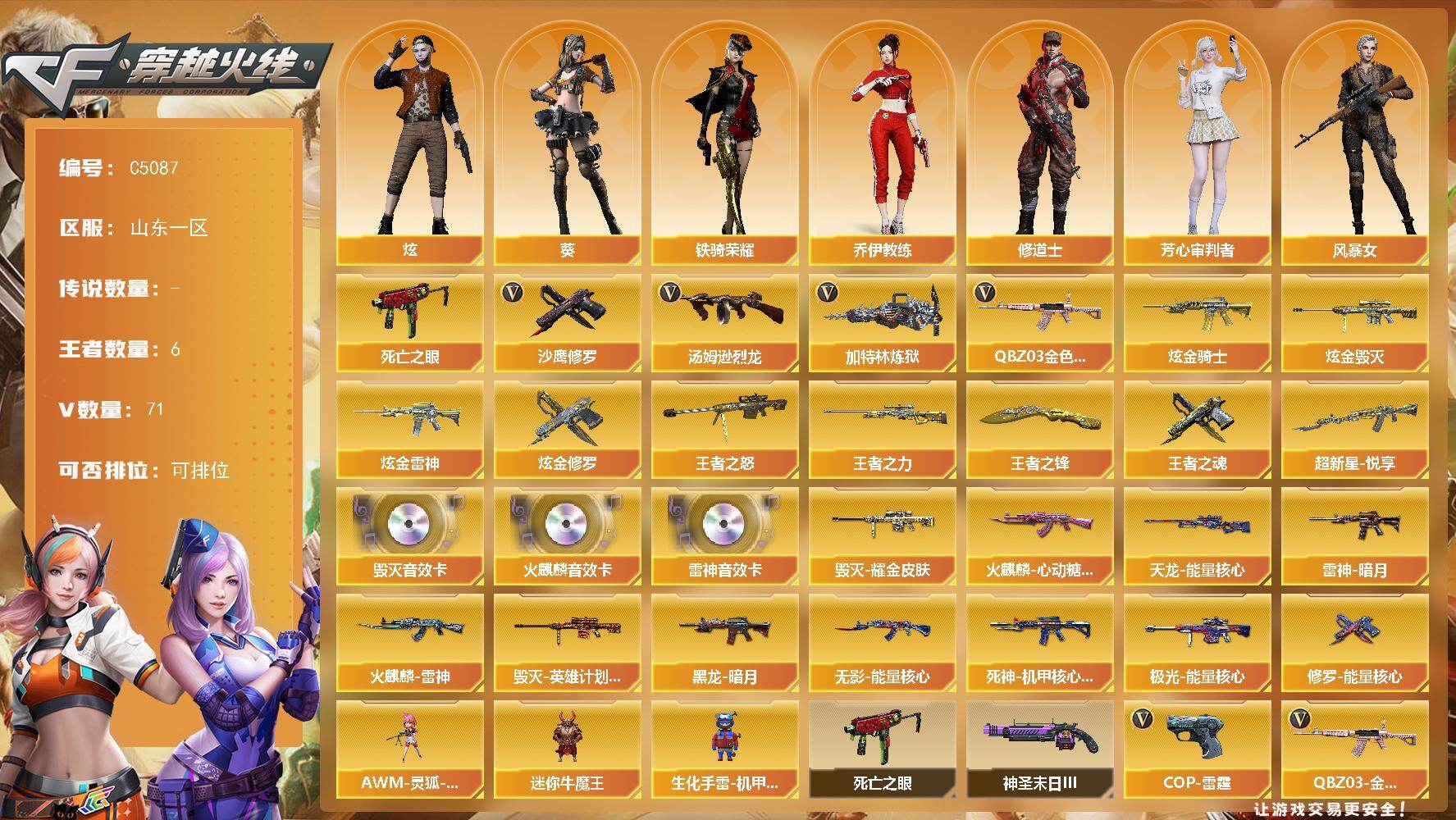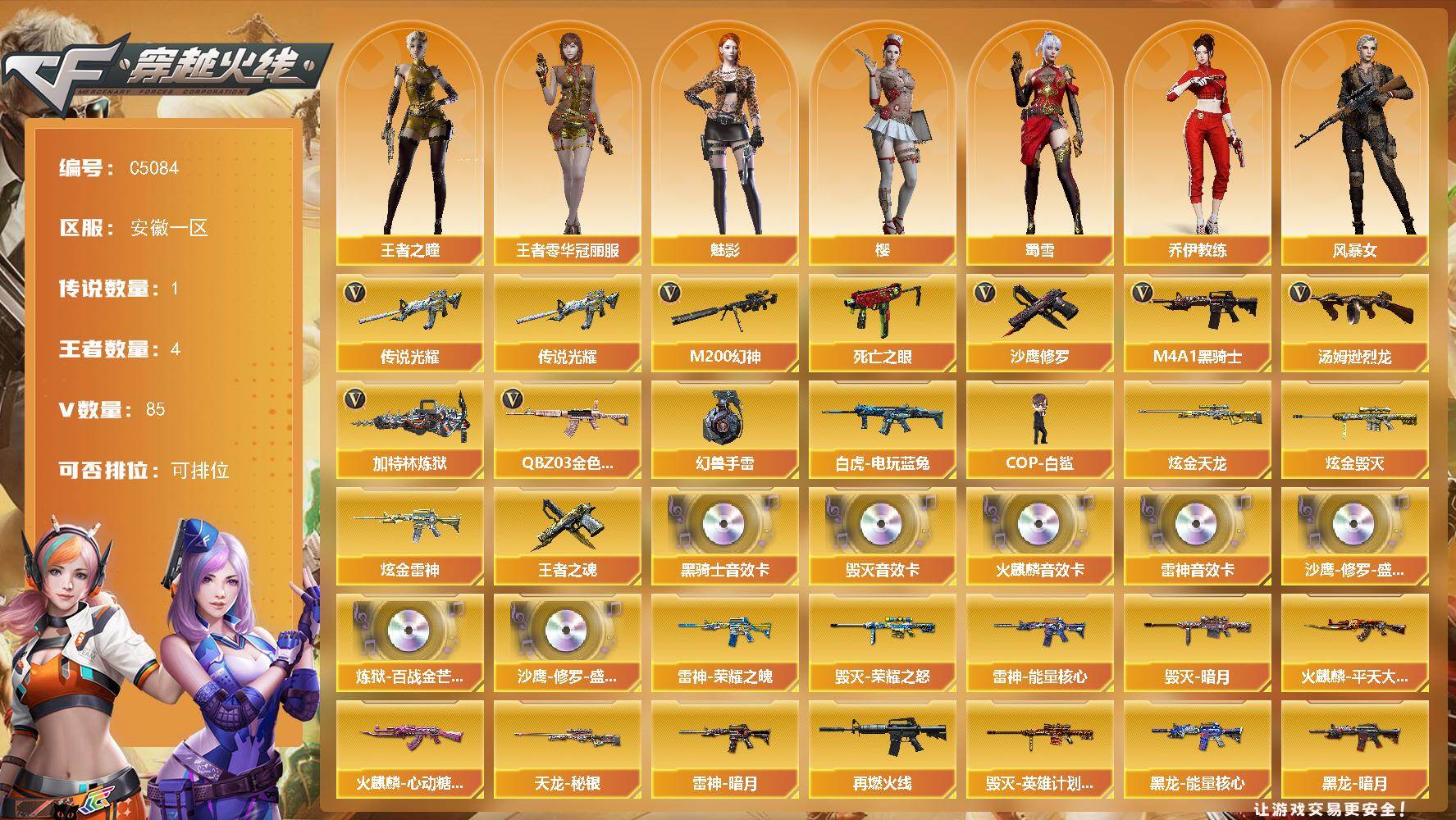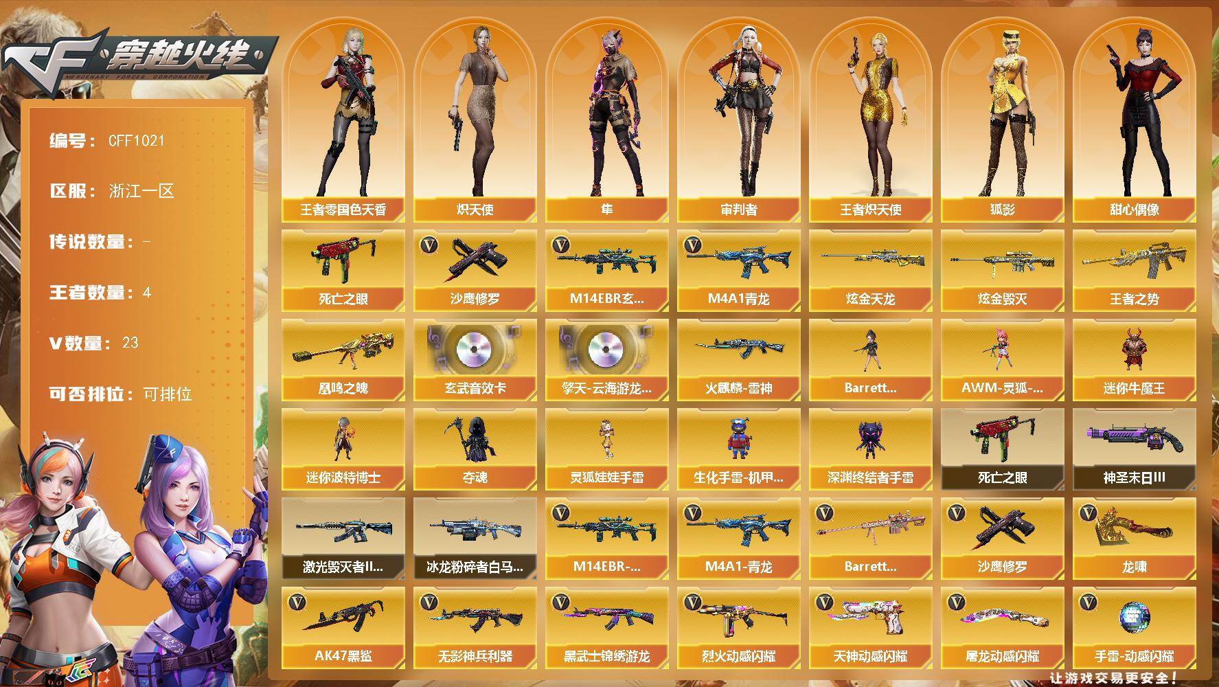 陕西一区-25V-0王者武器数-1炫金武器数【热门武器】:死亡之眼,金色小号