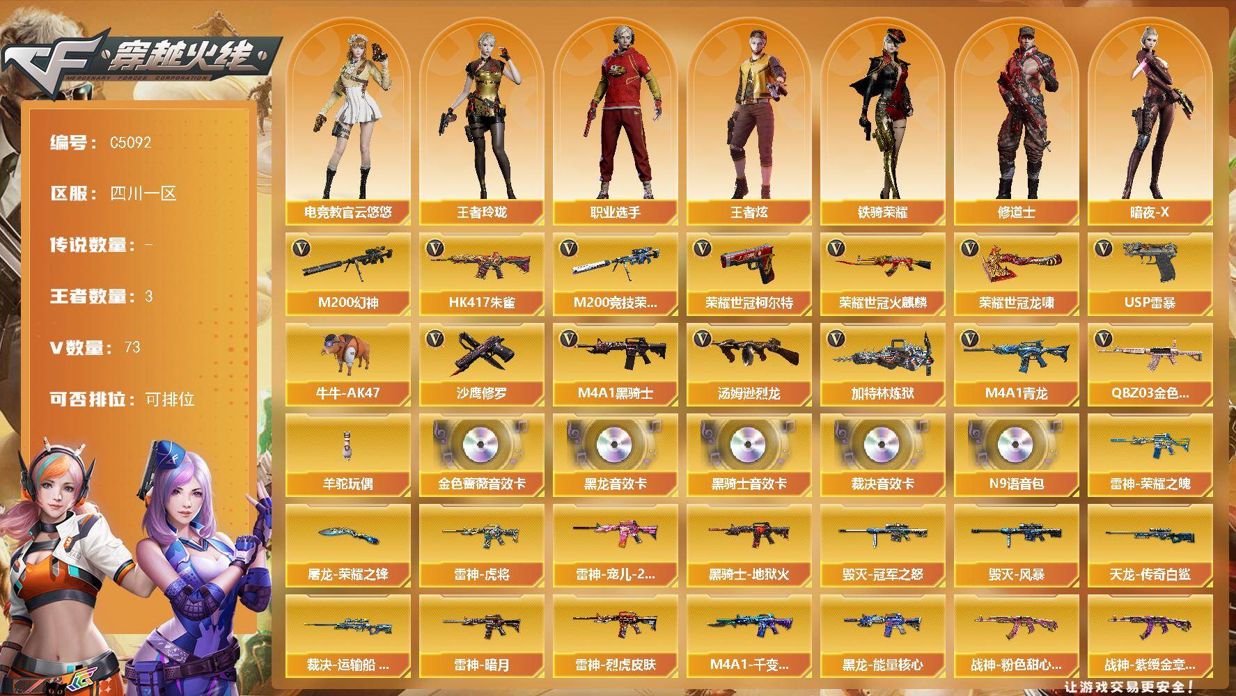 11V/98级/将帅/1英雄/死亡之眼/M4A1_黑骑士/沙鹰_修罗/火麒麟-雷神/