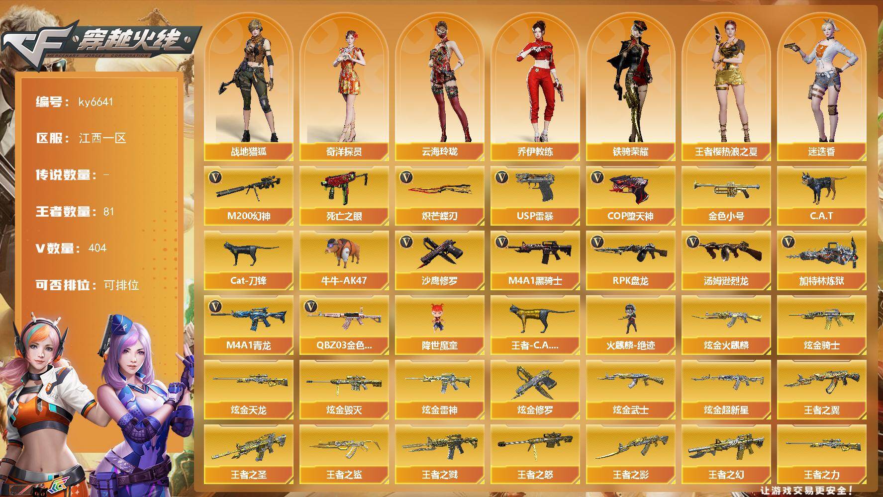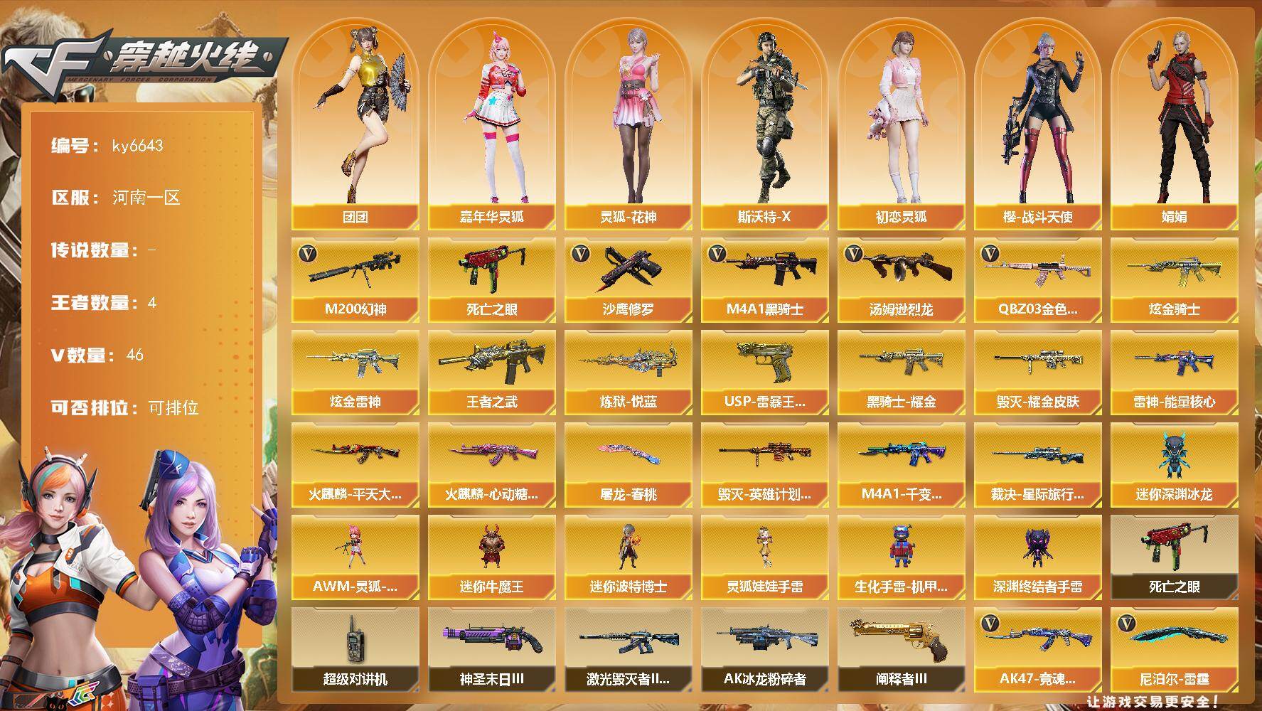 南方大区-36V-3王者-1炫金【热门武器】:M200-幻神,金色蔷薇-古