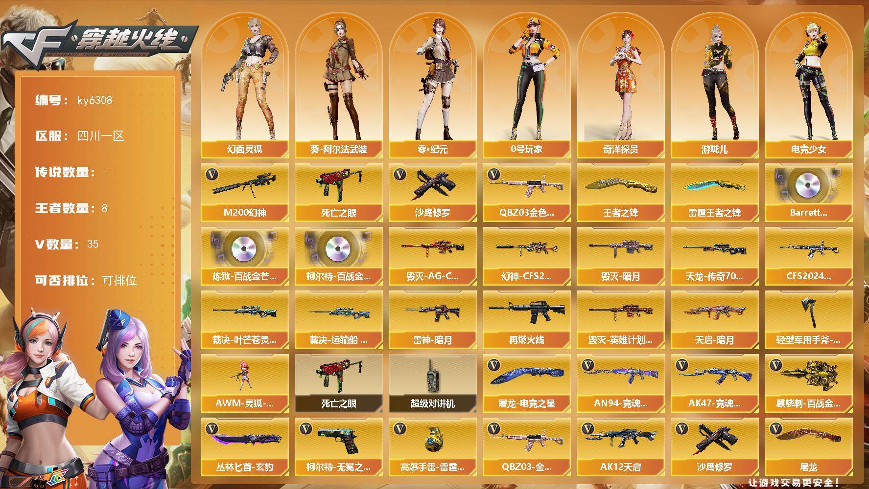重庆一区-48V-7王者武器数-5炫金武器数【热门武器】:M200-竞技荣