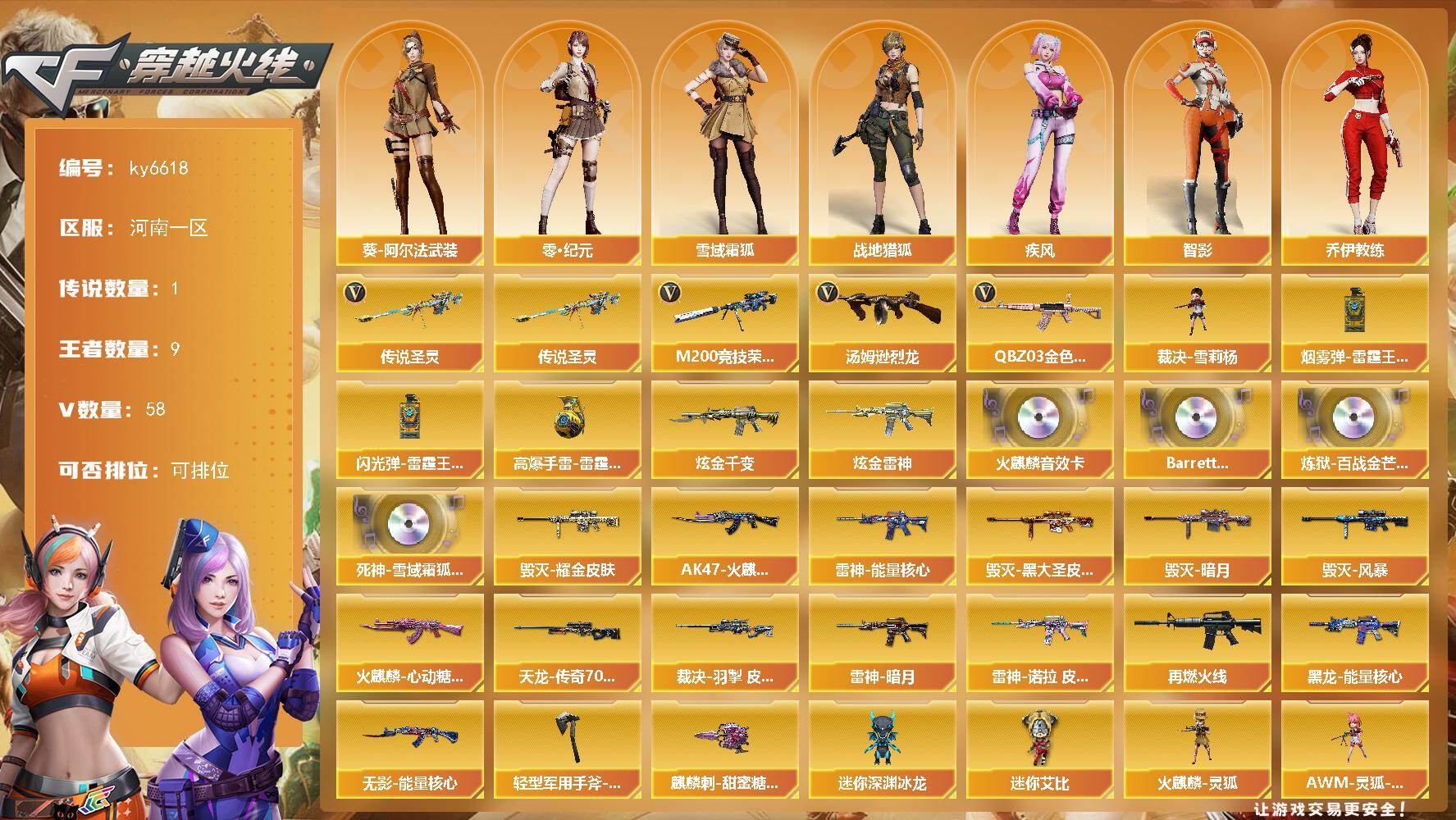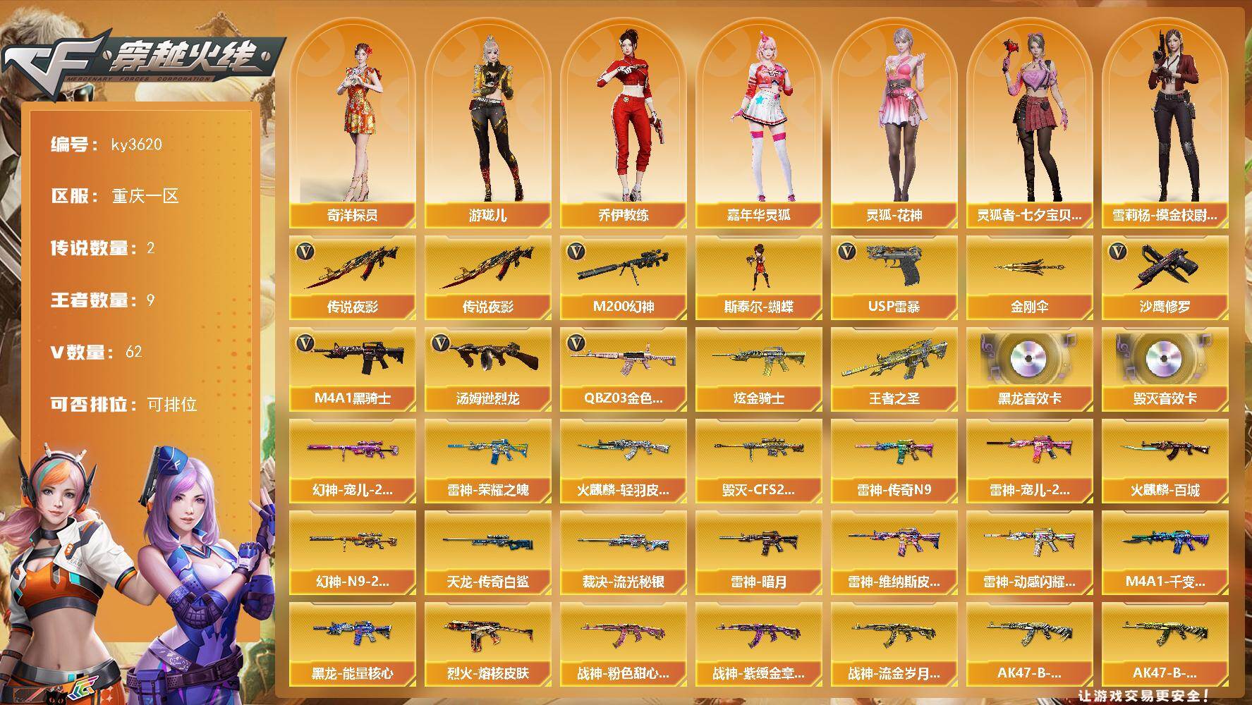 重庆一区-62V-9王者-1炫金【传说武器】:传说夜影【传说角色】:传说