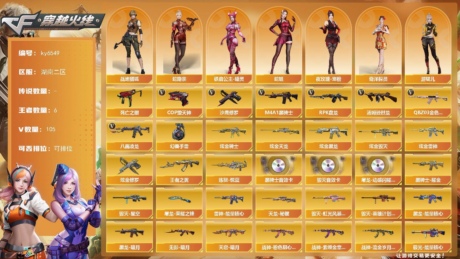 湖南二区-104V-6王者武器数-6炫金武器数【热门武器】:QBZ03-金