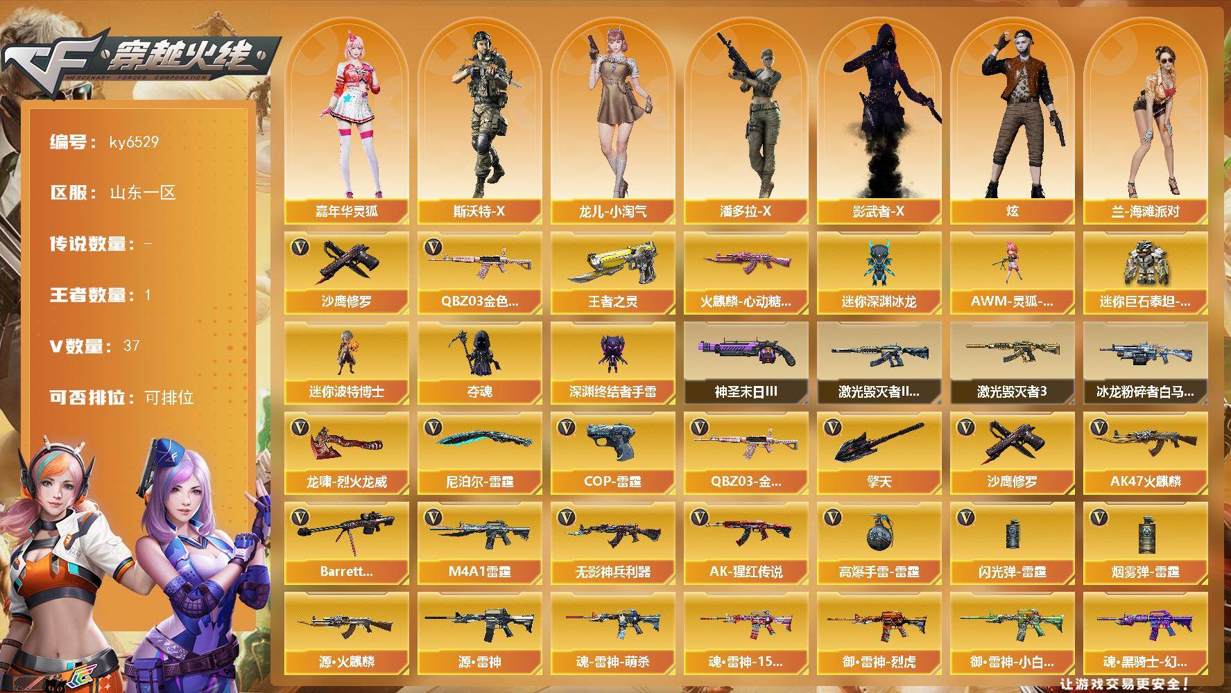 山东一区-37V-1王者武器数-0炫金武器数【热门武器】:QBZ03-金色