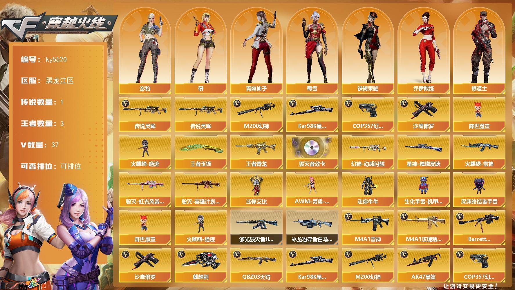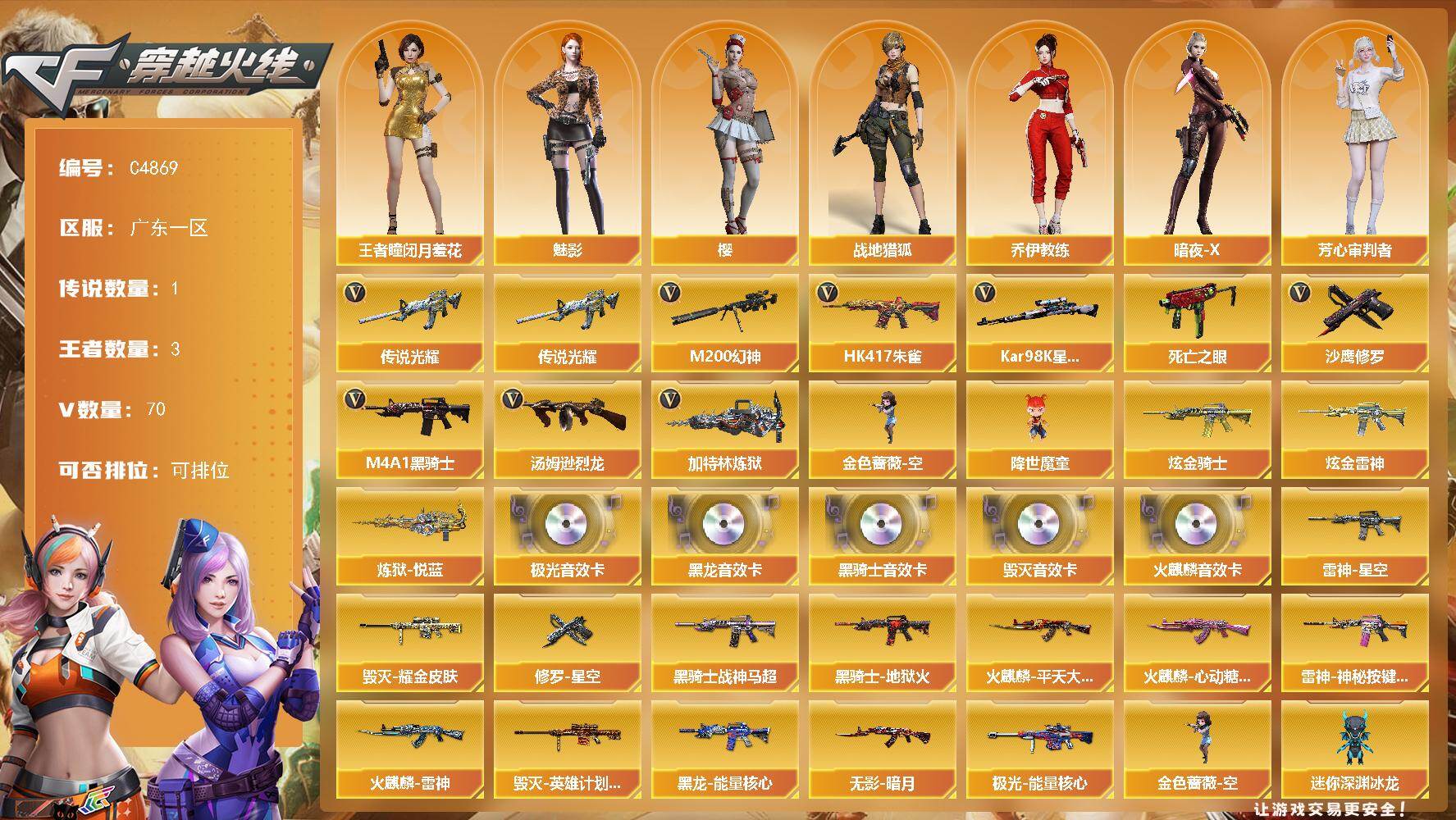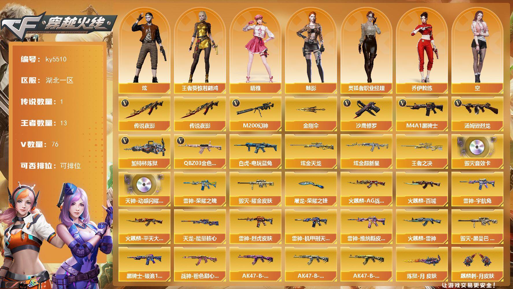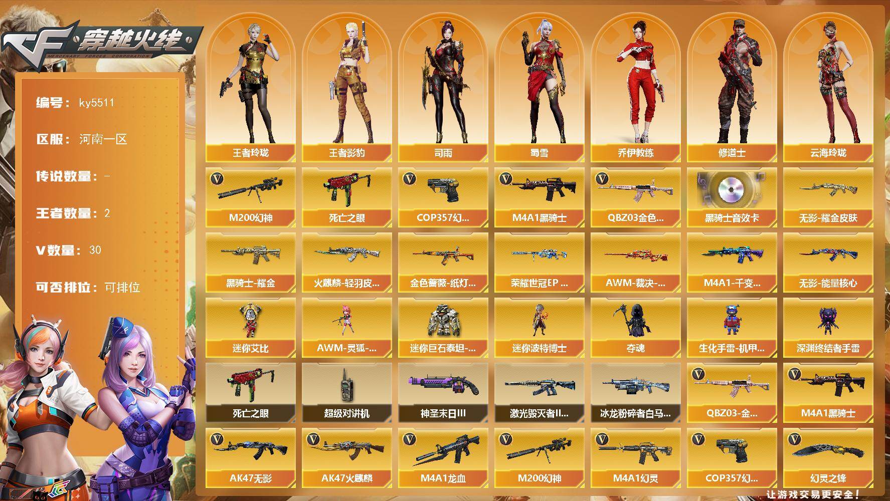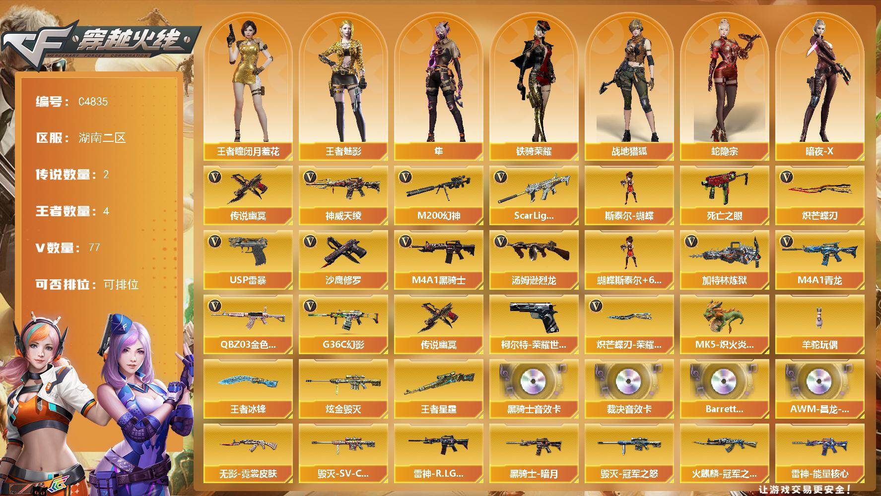 湖南一区-33V-4王者武器数-4炫金武器数【热门武器】:HK417-朱雀,