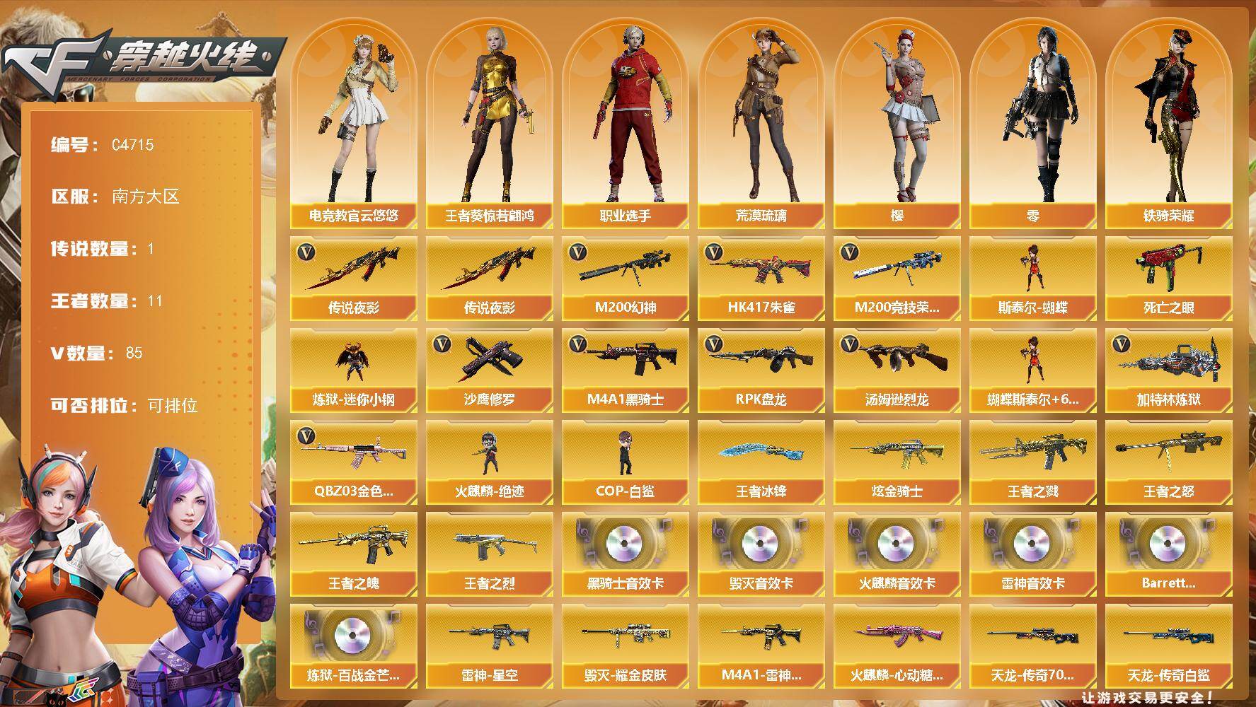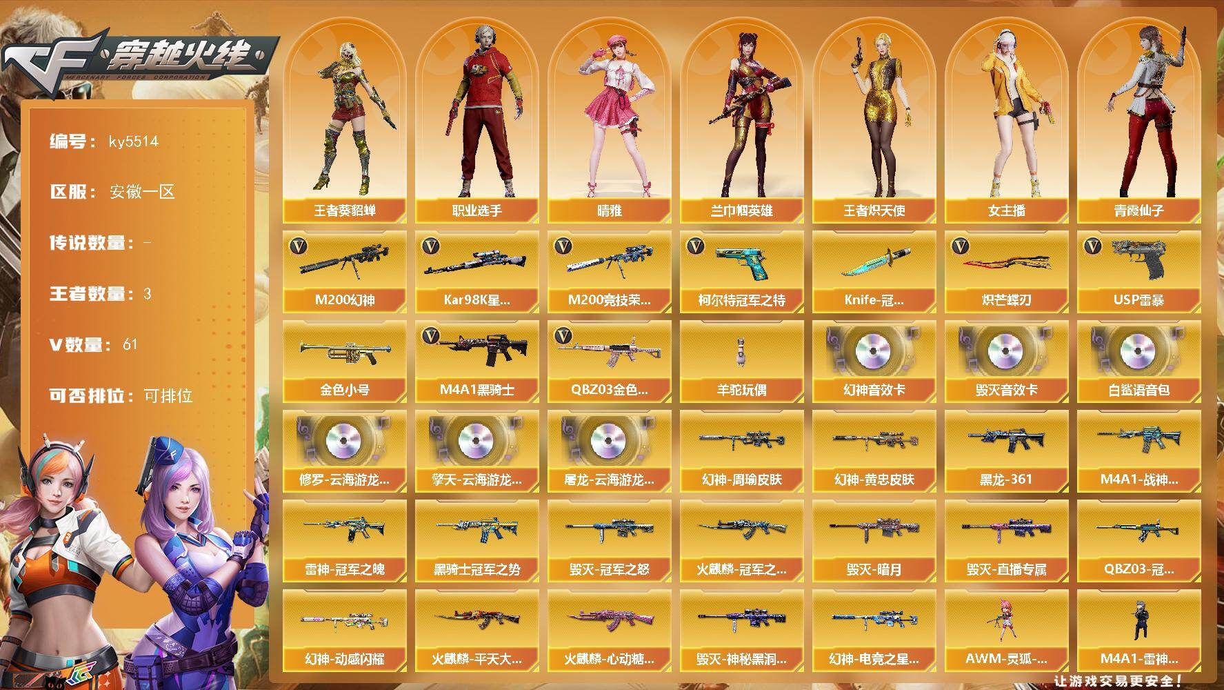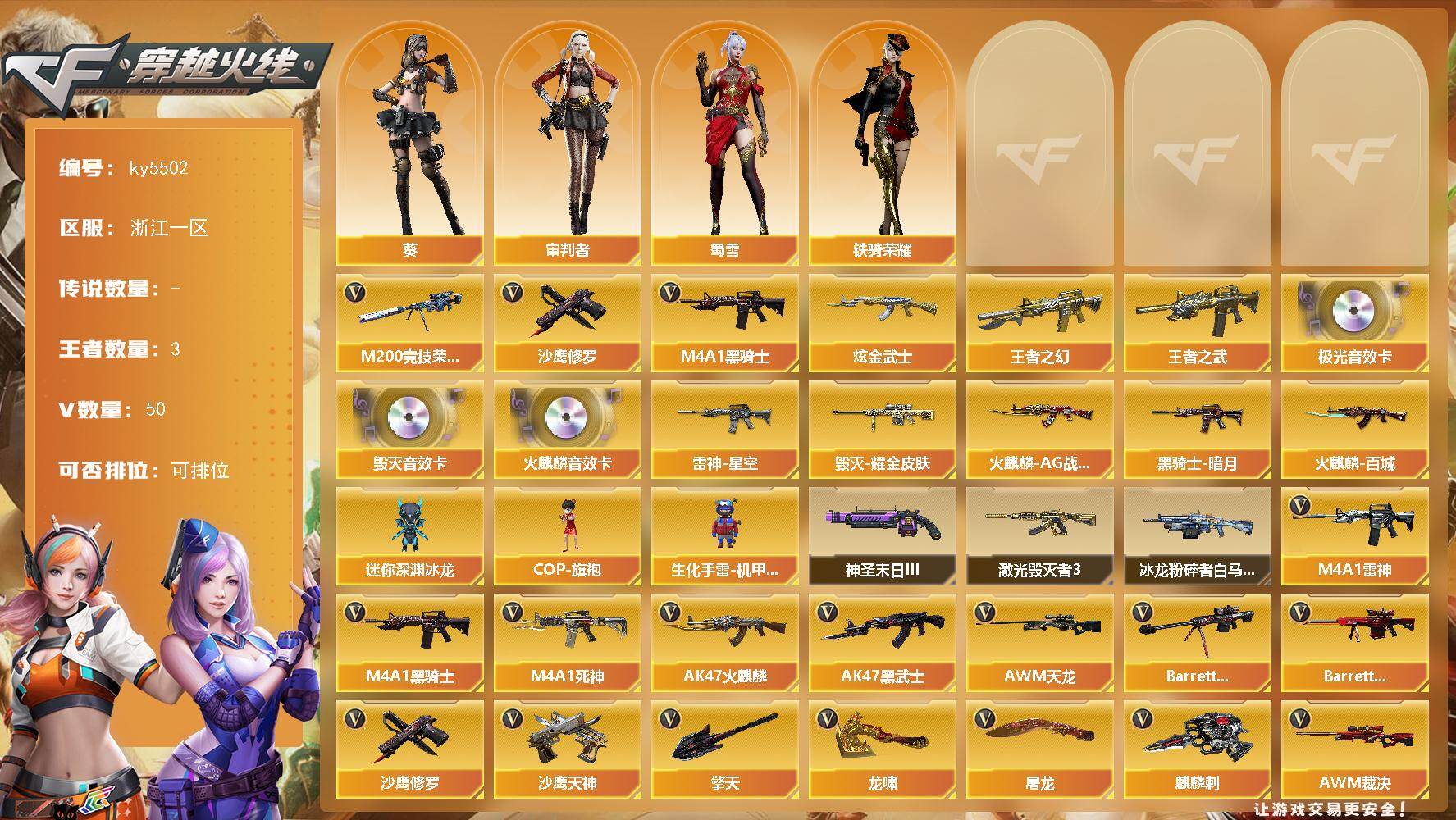 【商品标题】:浙江一区-50V-3王者-2炫金【热门武器】:M200-竞技荣
