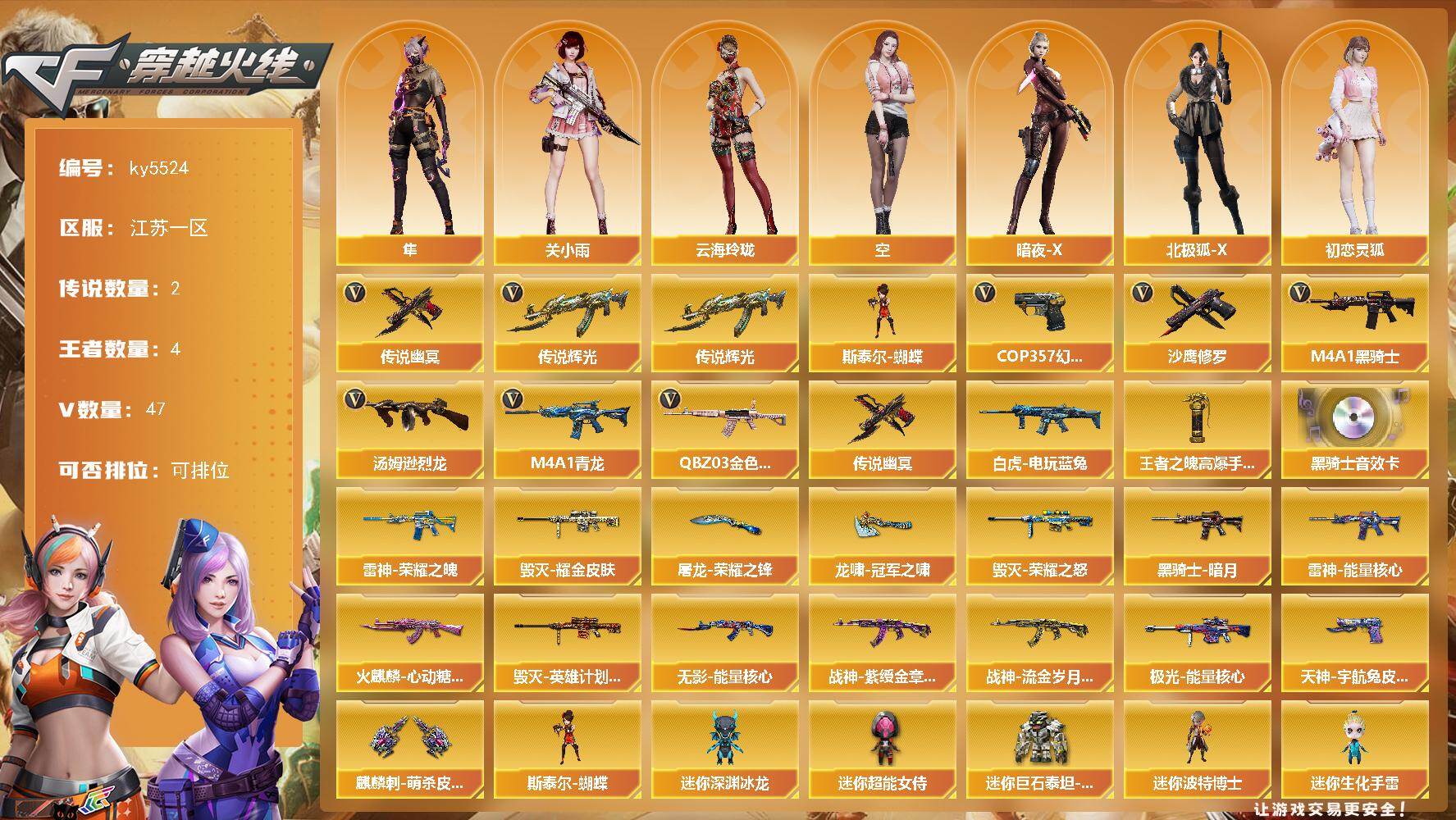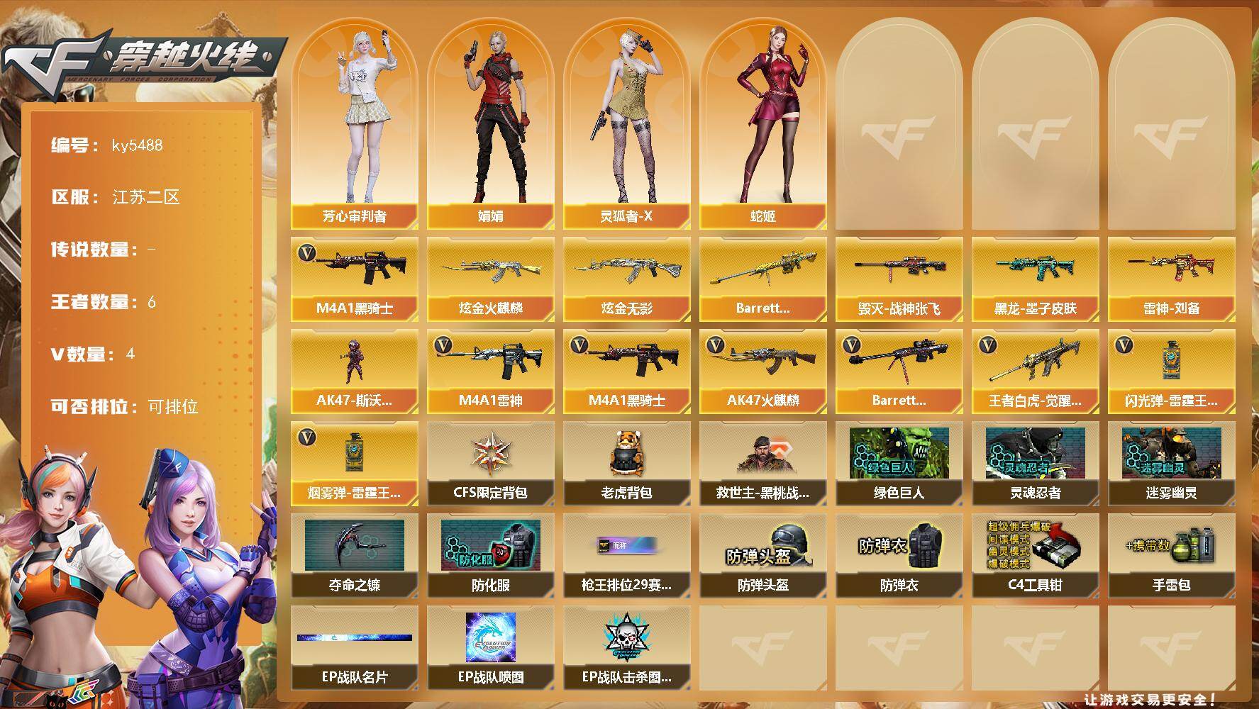 江苏二区-73V-10王者武器数-0炫金武器数【热门武器】:M4A1-青龙,