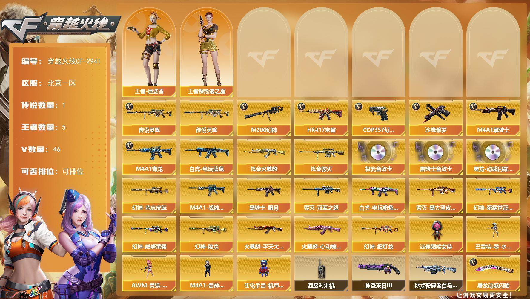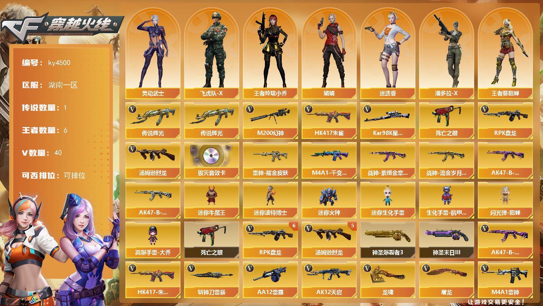 湖南一区-51V-1王者武器数-2炫金武