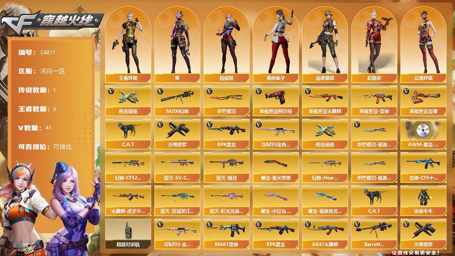 河南一区-41V-6王者武器数-0炫金武器数
