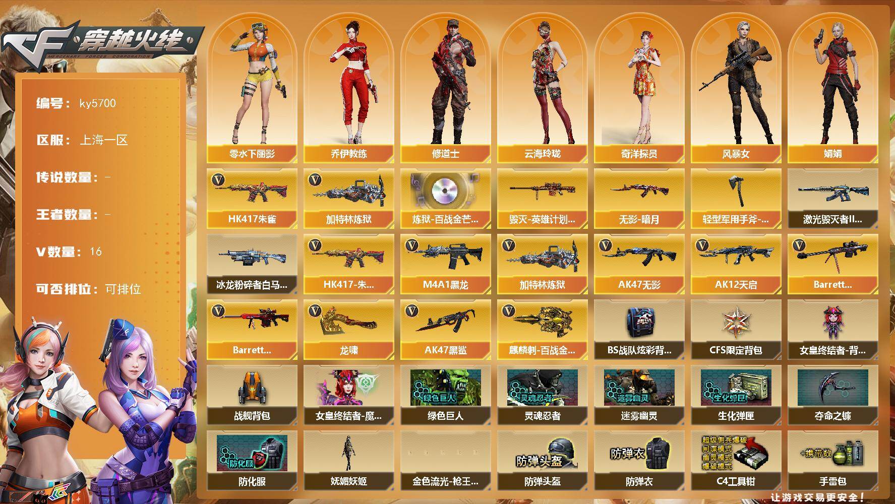 上海一区-20V-0王者武器数-0炫金武器数【热门武器】:HK417-朱雀,